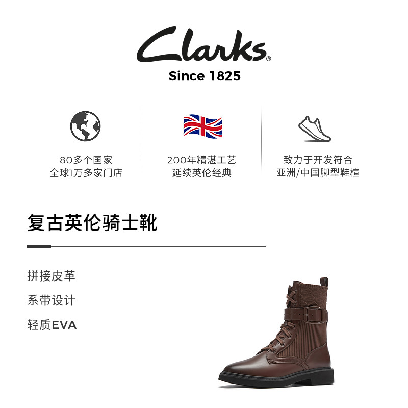 Clarks其乐Splend系列女鞋秋冬英伦复古英伦交叉绑带骑士马丁靴
