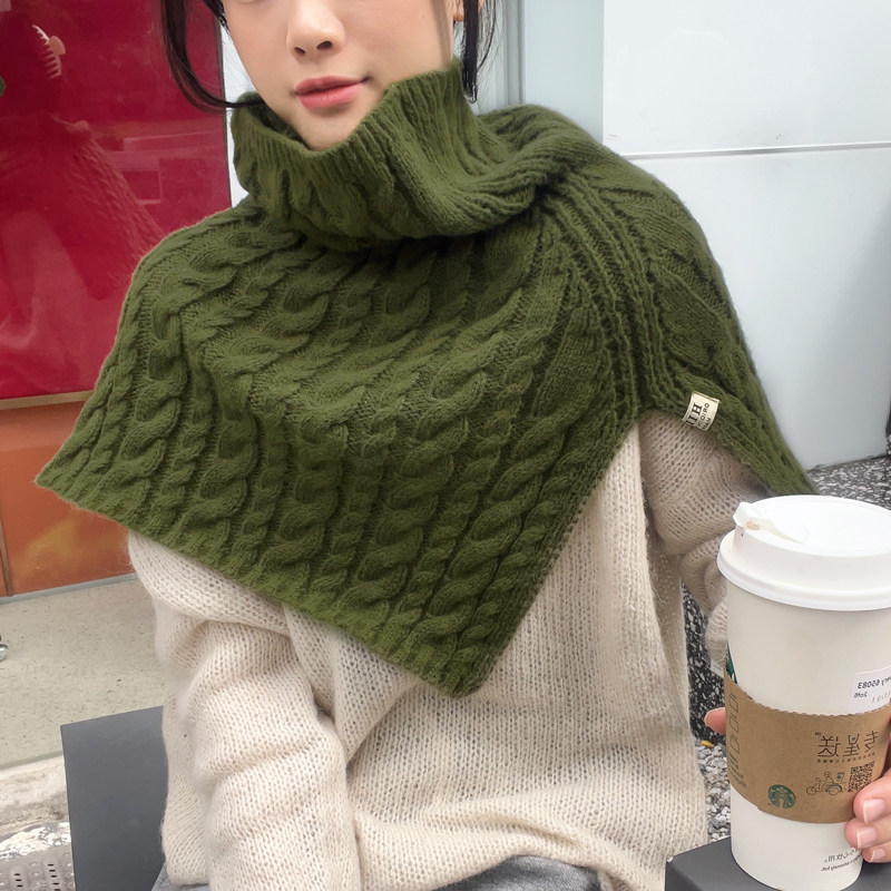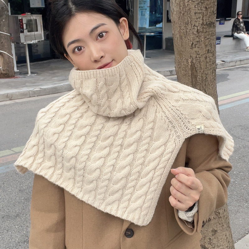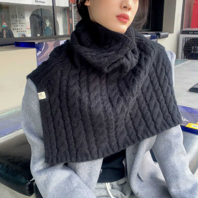 围脖套头高领毛衣护颈披肩斗篷两用外搭针织毛线围巾女秋冬季黑色