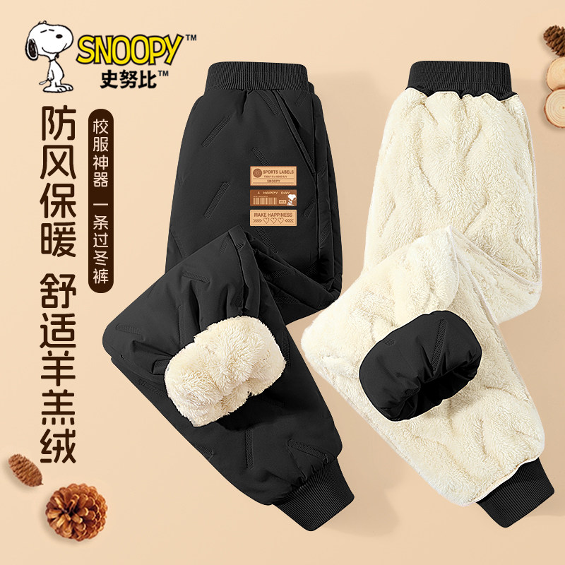 史努比男童加绒裤子秋冬一体绒裤男孩保暖棉裤儿童冬季加厚羽绒裤