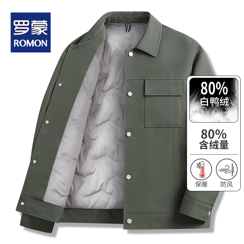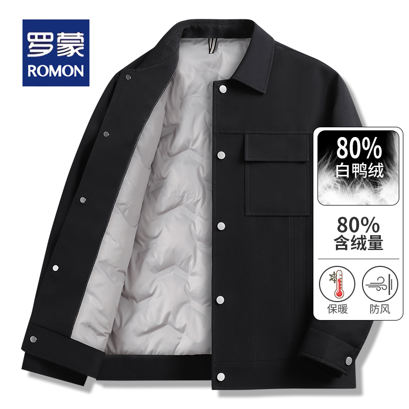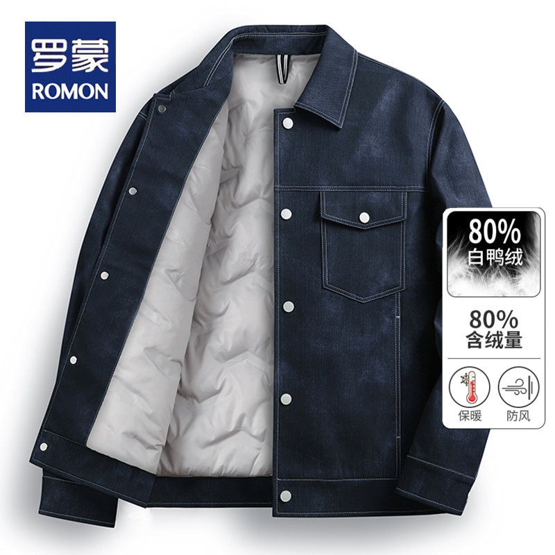 罗蒙牛仔外套男秋冬工装羽绒服男士轻薄翻领白鸭绒夹克男款冬季