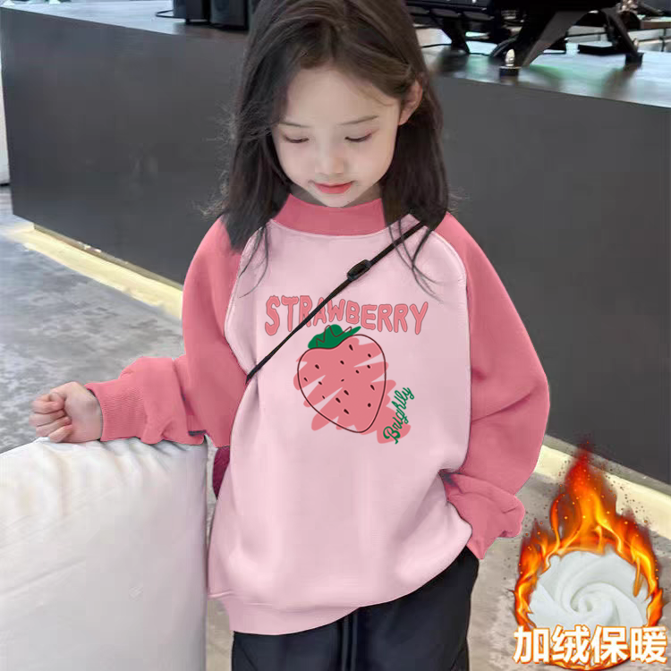 100%纯棉女童装加绒圆领卫衣2025秋冬季中小儿童宝宝休闲百搭上衣