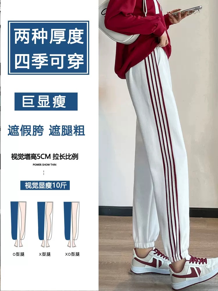 大码灰色运动裤女2026胖mm春秋新款宽松三条杠束脚哈伦裤纯棉卫裤