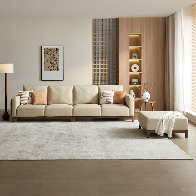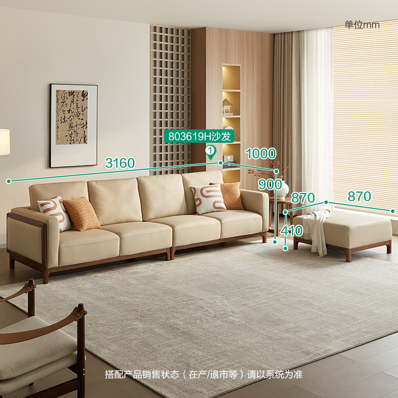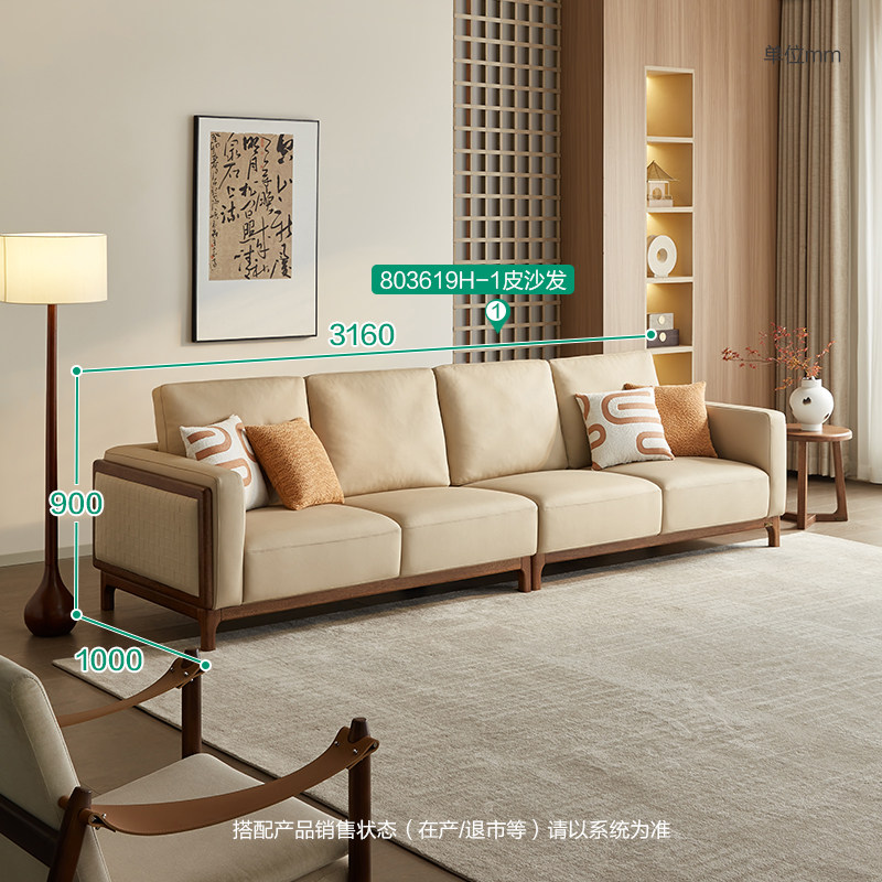 全友家居 门店同款 森林木语Ⅱ 803619H 实木真皮皮艺沙发四人位