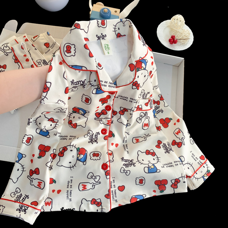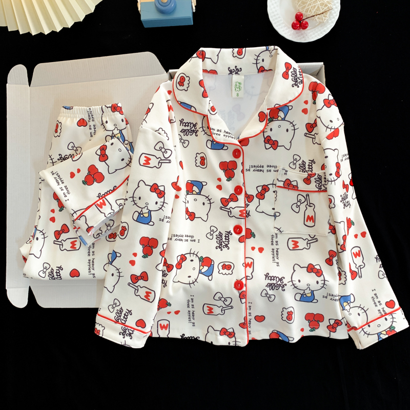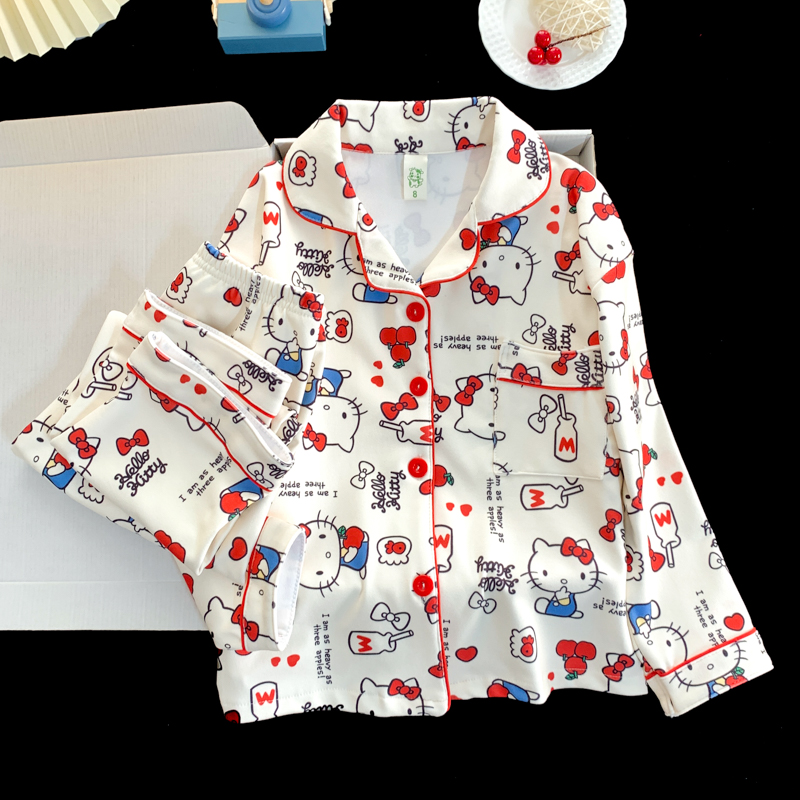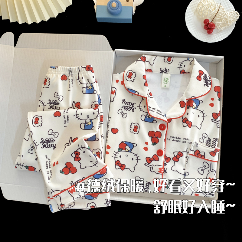 KT猫睡衣女童秋冬季长袖保暖加厚德绒开衫中大儿童女孩学生家居服
