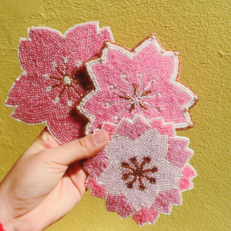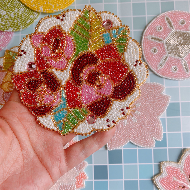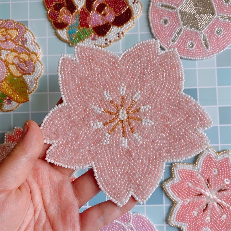 出口订单日本印度樱花波西米亚手工串珠子圆形杯垫隔热垫子zakka