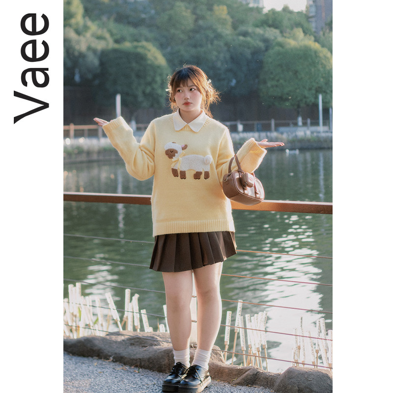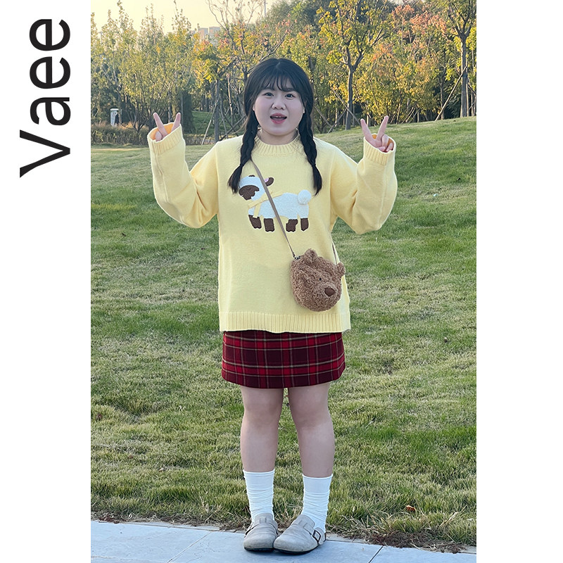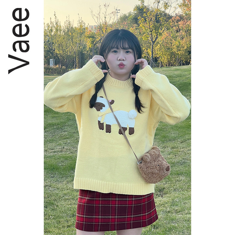 Vaee大码女装小羊提花圆领套头毛衣秋冬胖mm宽松显瘦百搭长袖针织