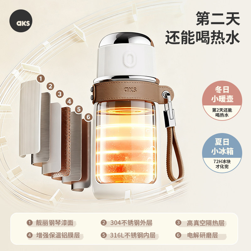 aks316不锈钢大容量保温杯女士2026新款高颜值带盖水杯女便携杯子