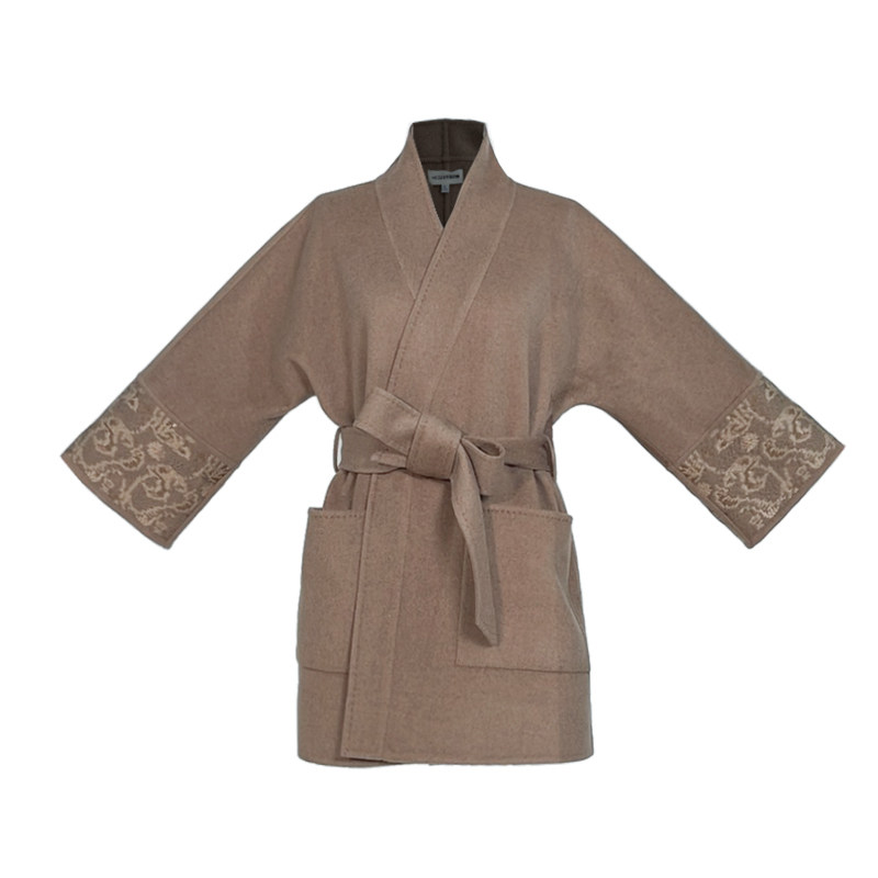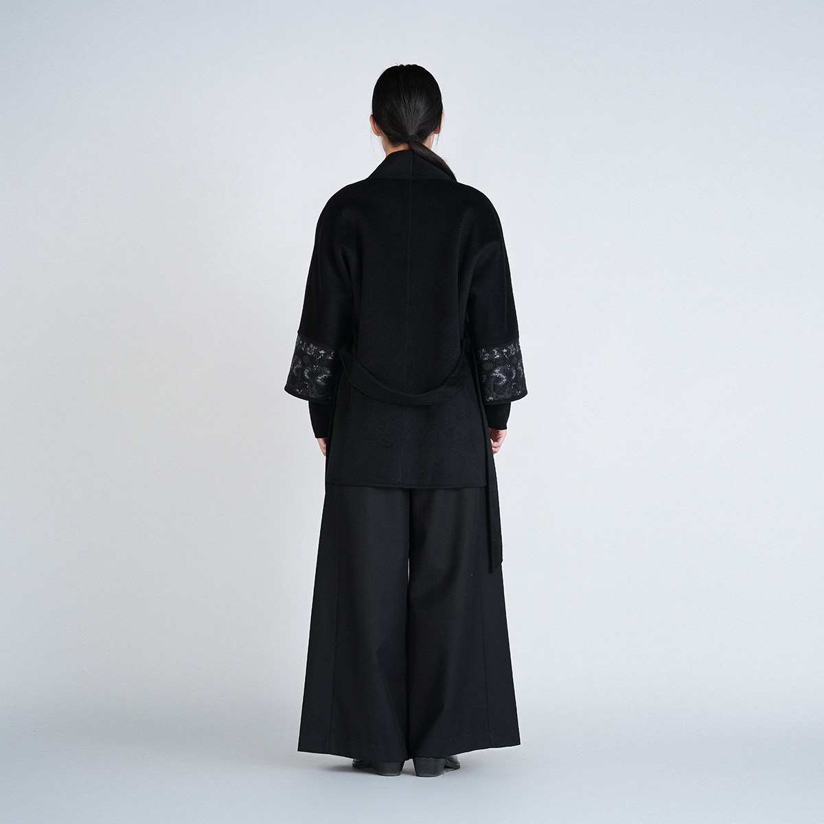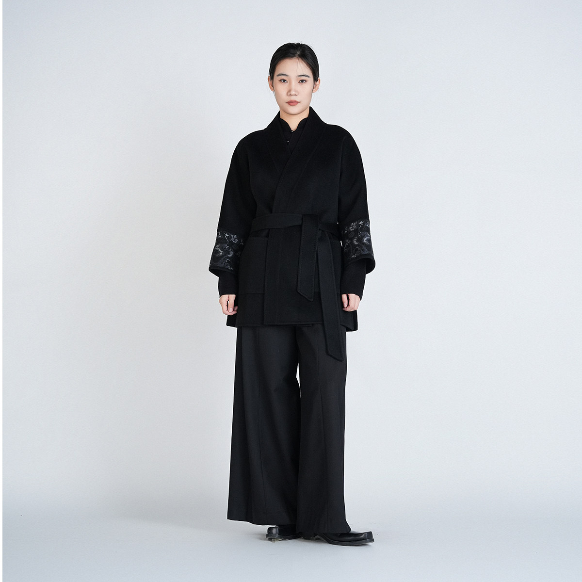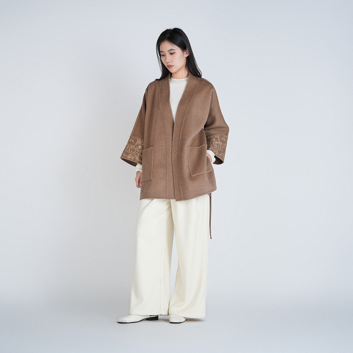 浒城古娘新款山羊绒刺绣系带短款新中式国风双面呢大衣外套女春秋