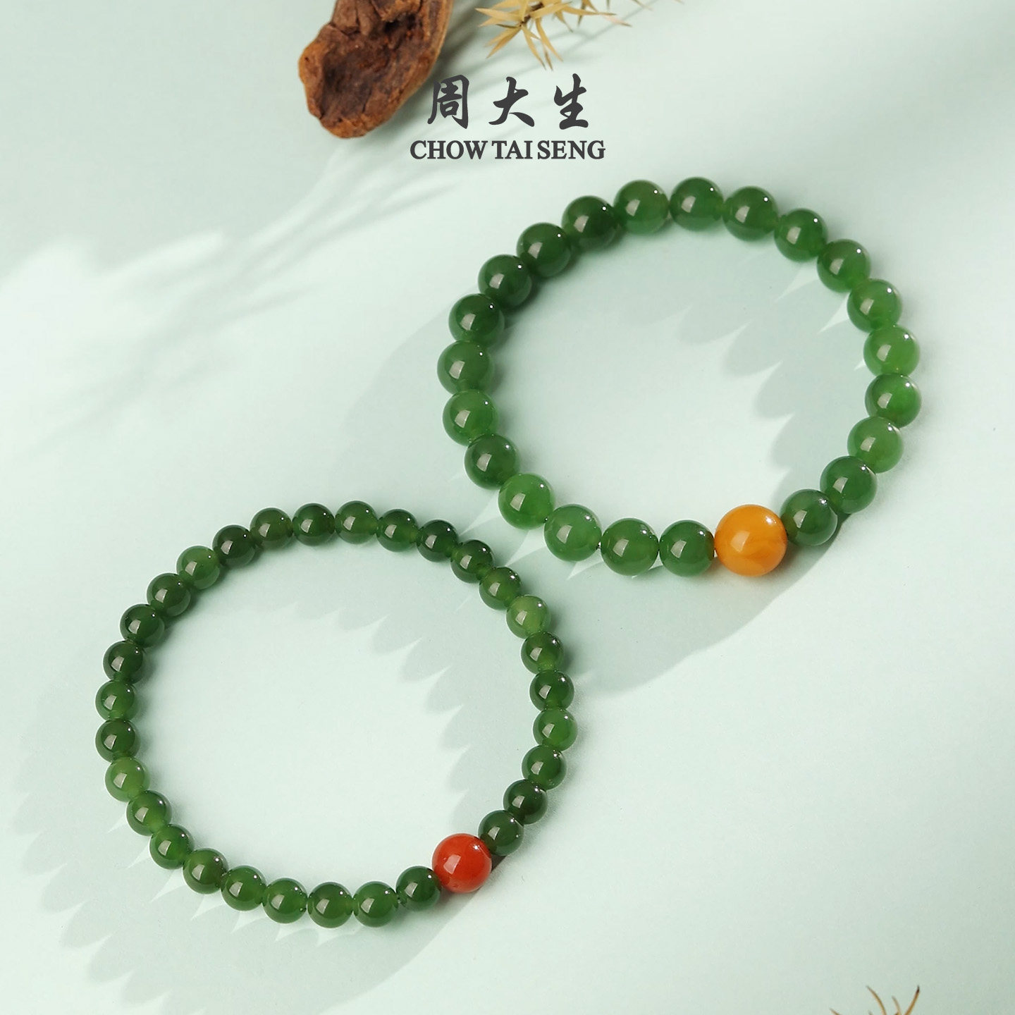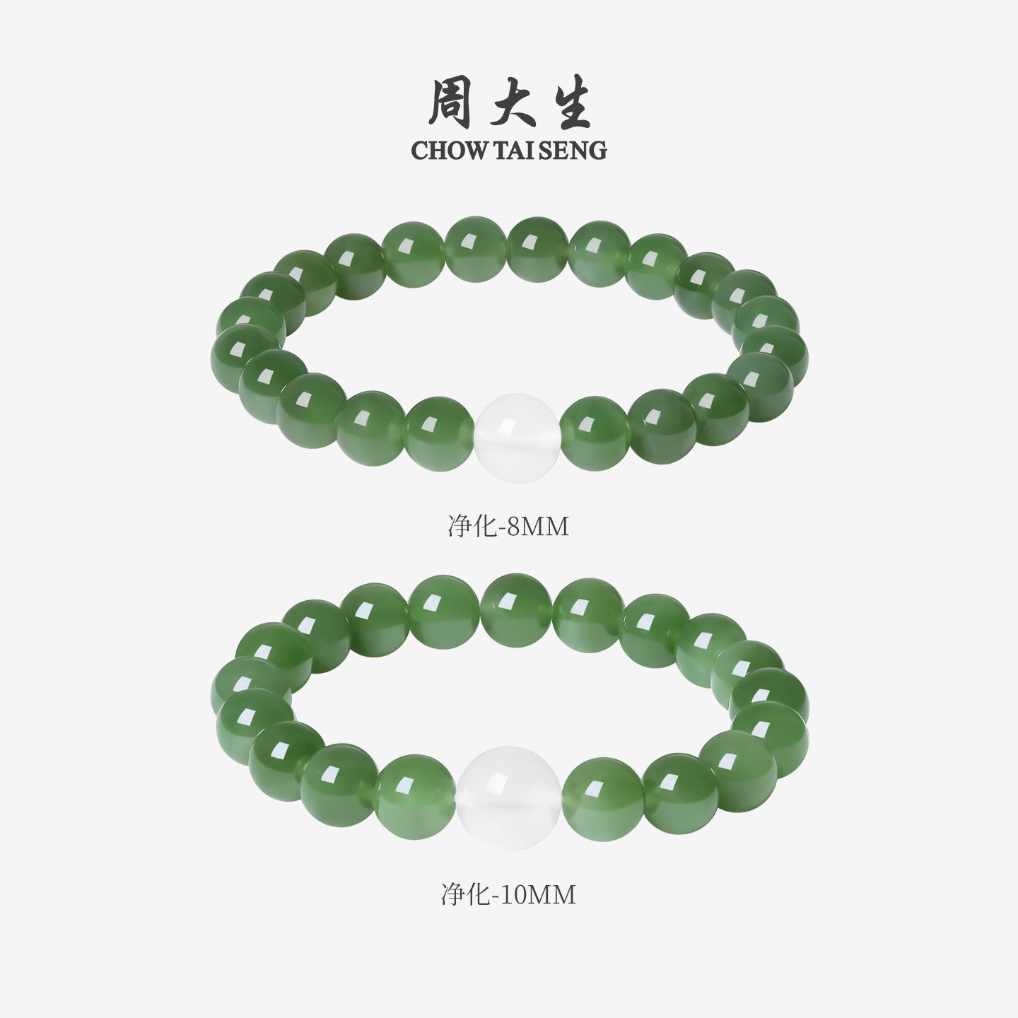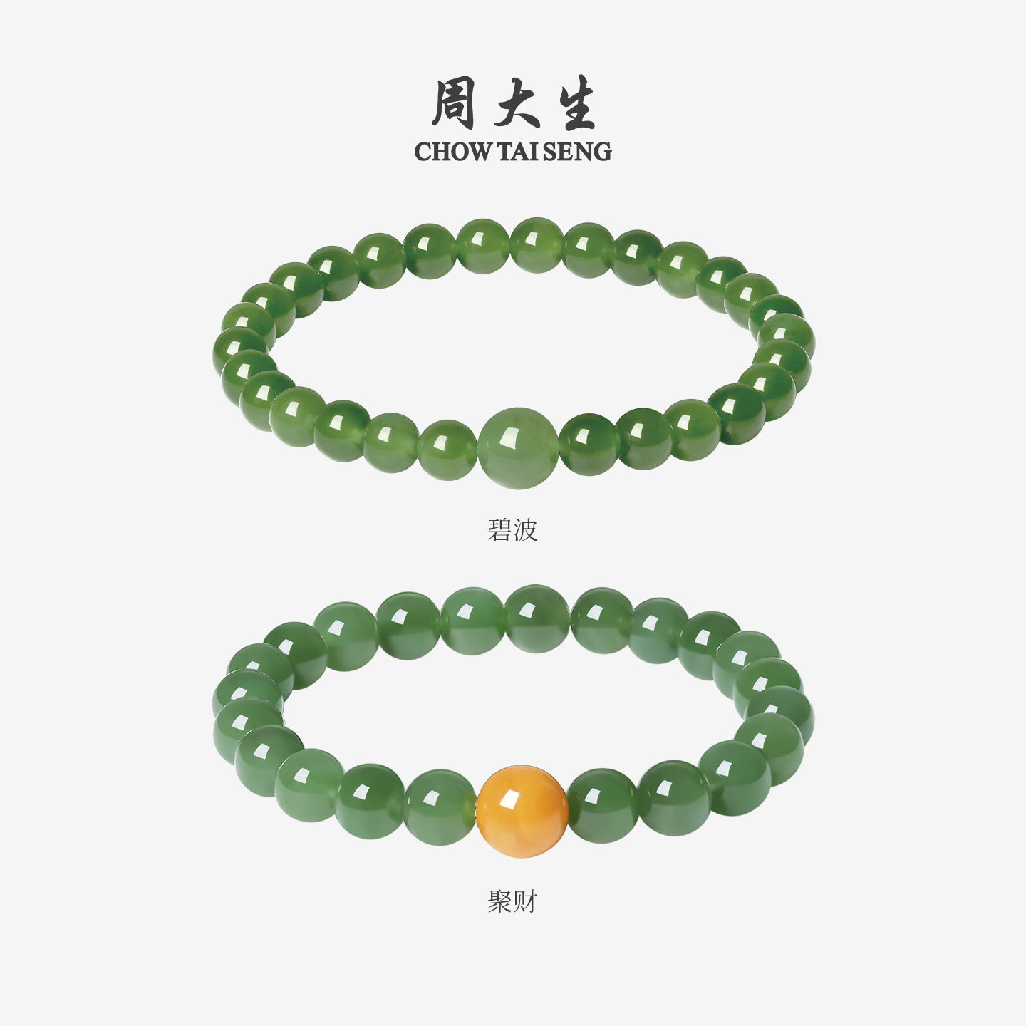 周大生和田碧玉紫水晶手串女琥珀玛瑙玉石国风手链情人节礼物女生