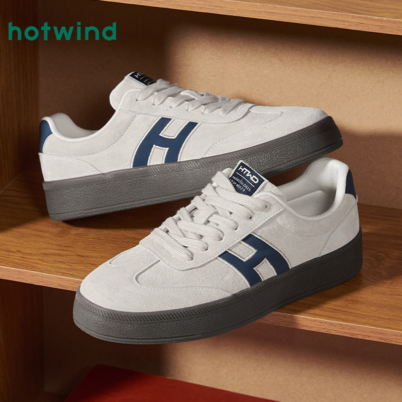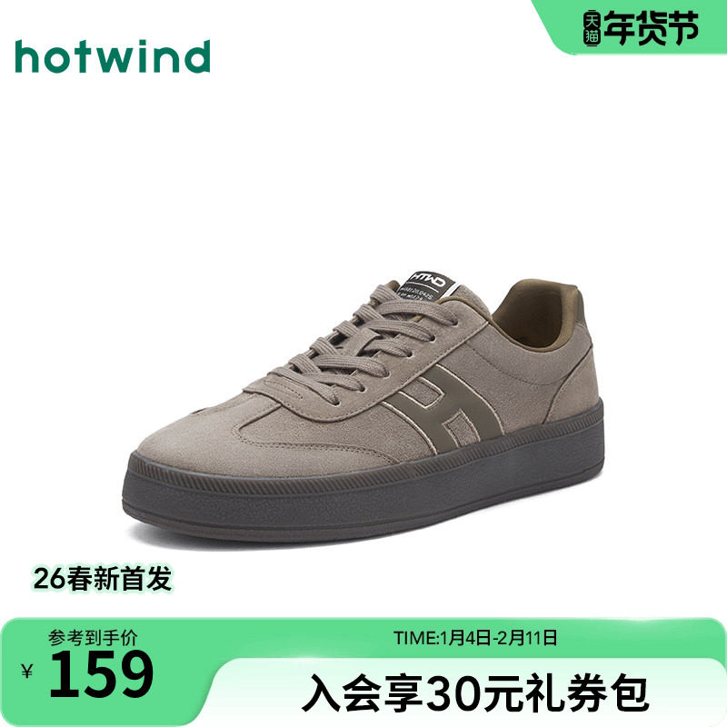 热风2026年春季新款男士时尚休闲鞋百搭户外潮流舒适增高板鞋子