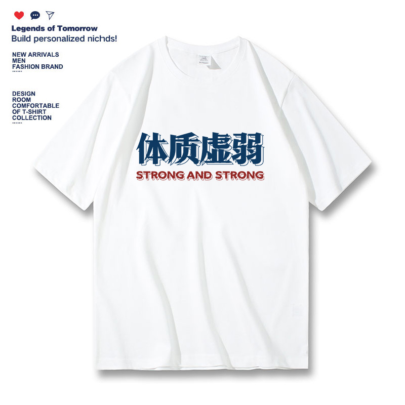 夏季新款骨瘦如柴个性创意文字体质虚弱短袖t恤男纯棉宽松青少年T