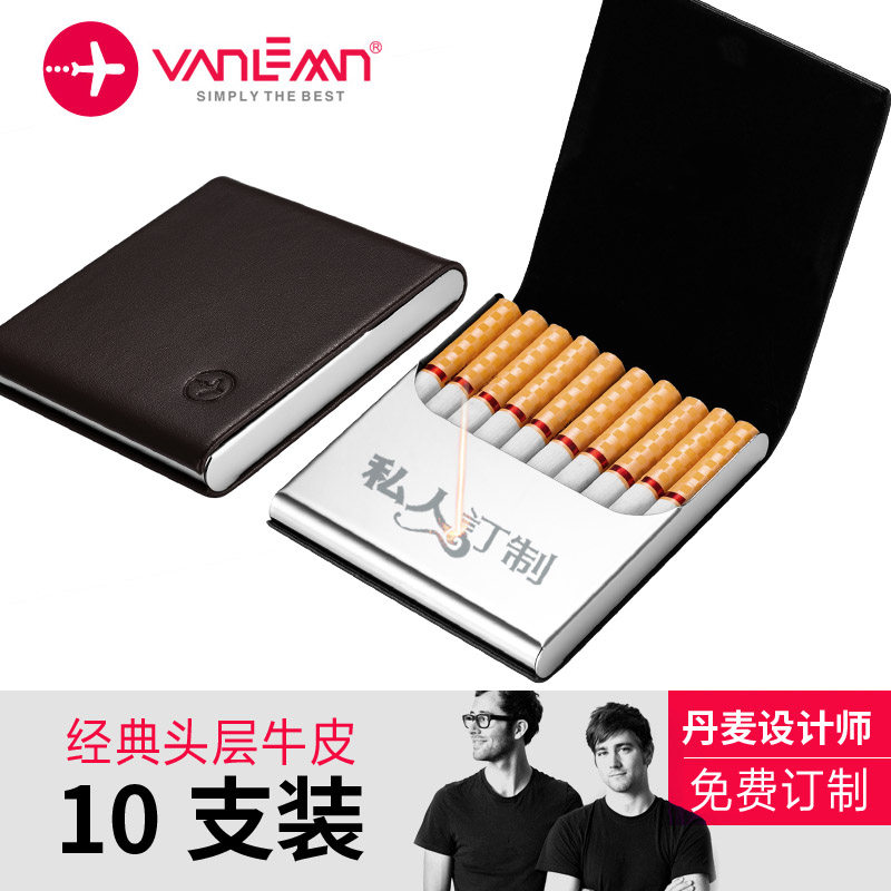 丹麦梵勒真皮烟盒男便携翻盖高档粗烟超薄款防汗香烟套10支20支装