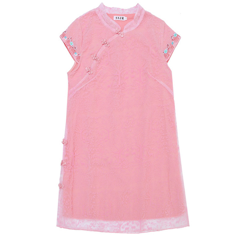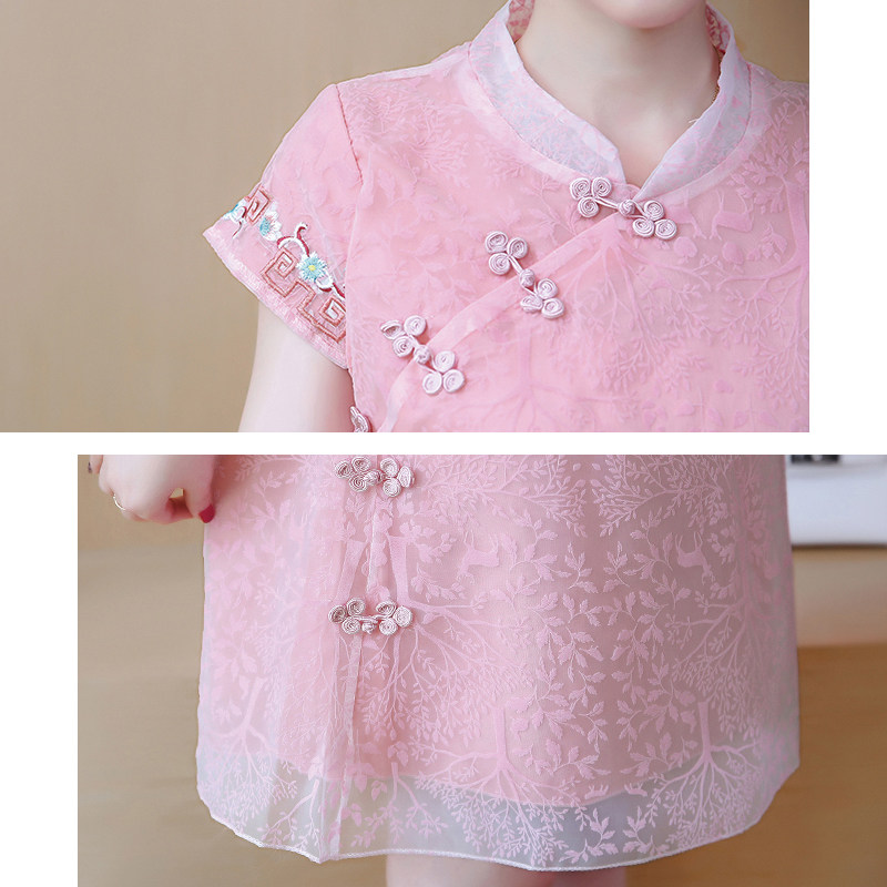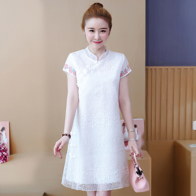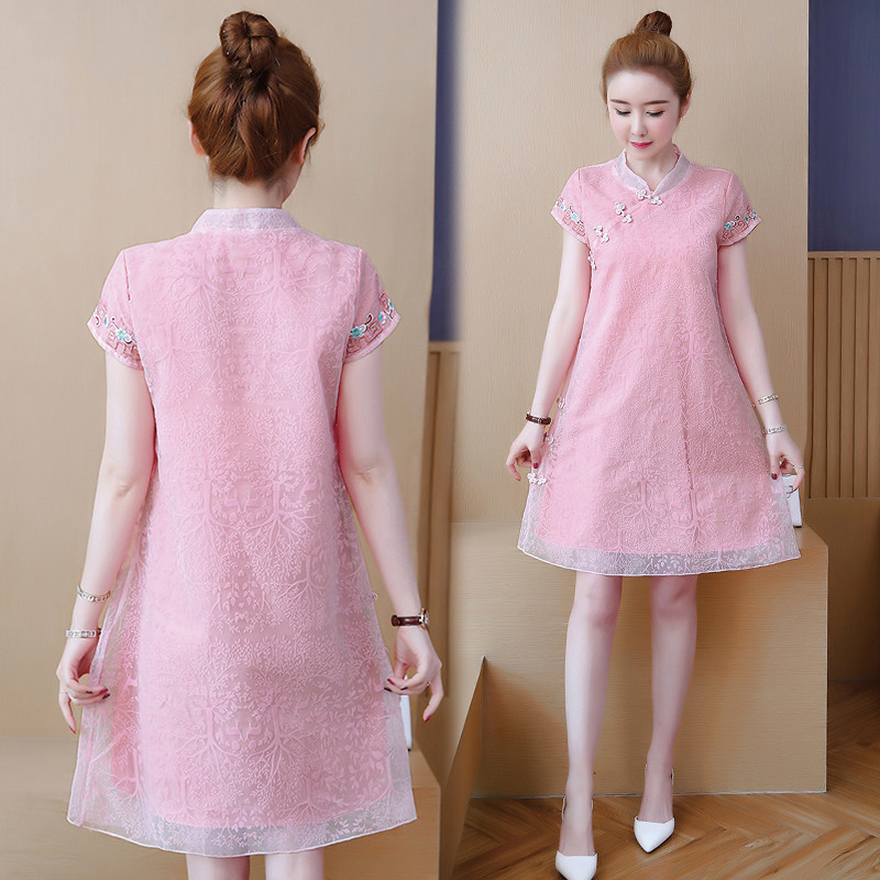 大码夏装胖mm中国风女装欧根纱新式旗袍连衣裙改良复古短袖网纱裙