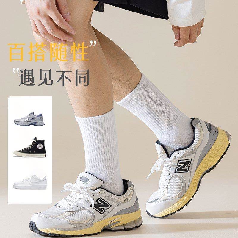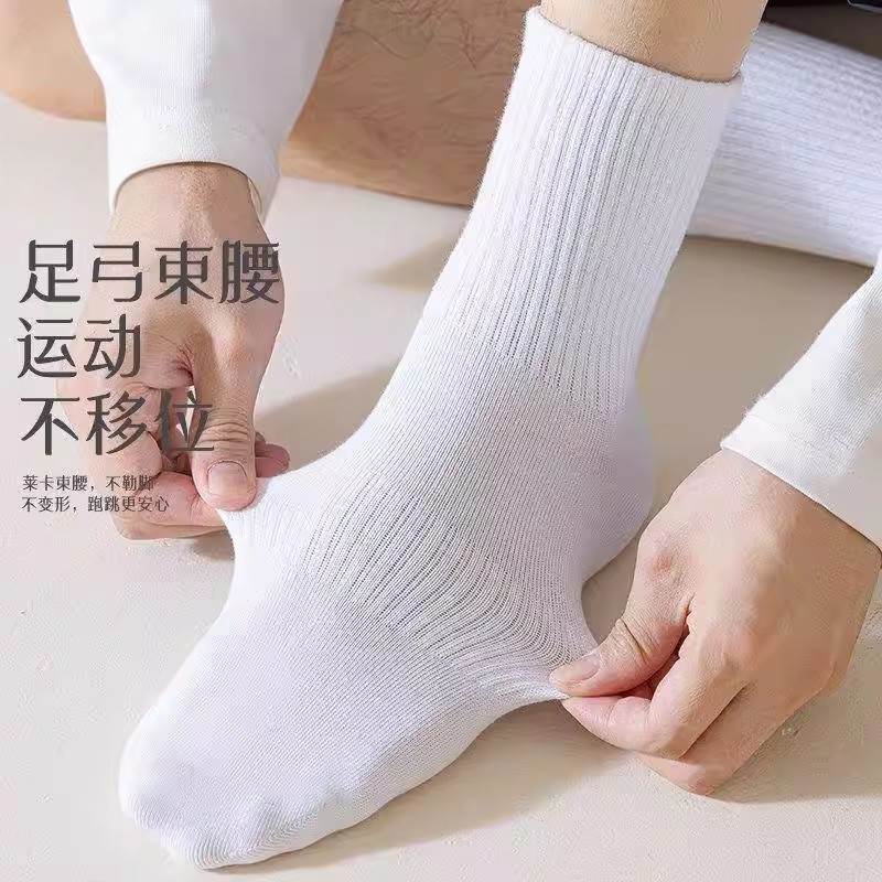白色袜子纯棉纱线男中筒防臭秋冬季纯白袜男生运动篮球学生长筒袜