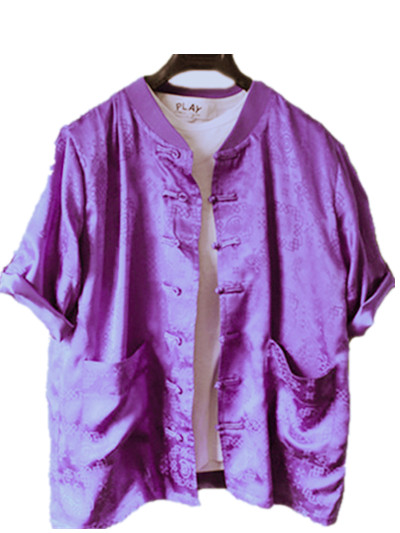三溪铺棒球领短袖衬衫男陈冠希同款真丝提花国潮盘扣短袖开衫