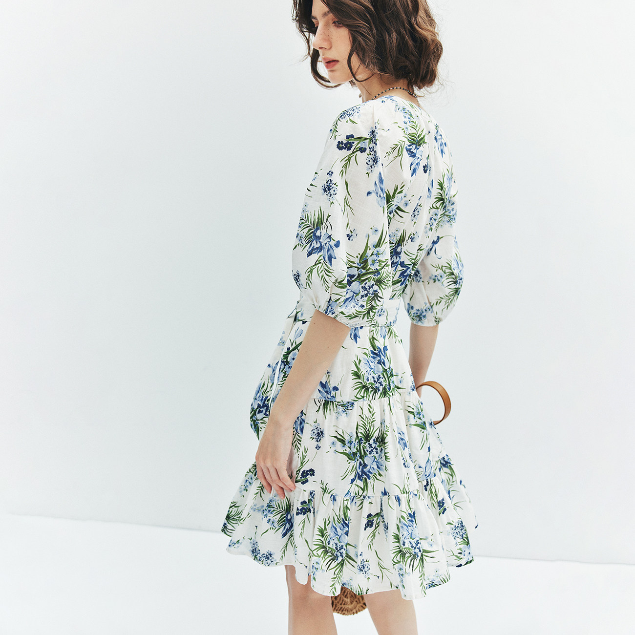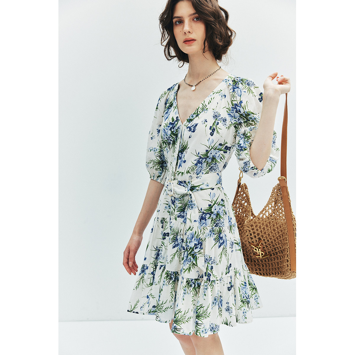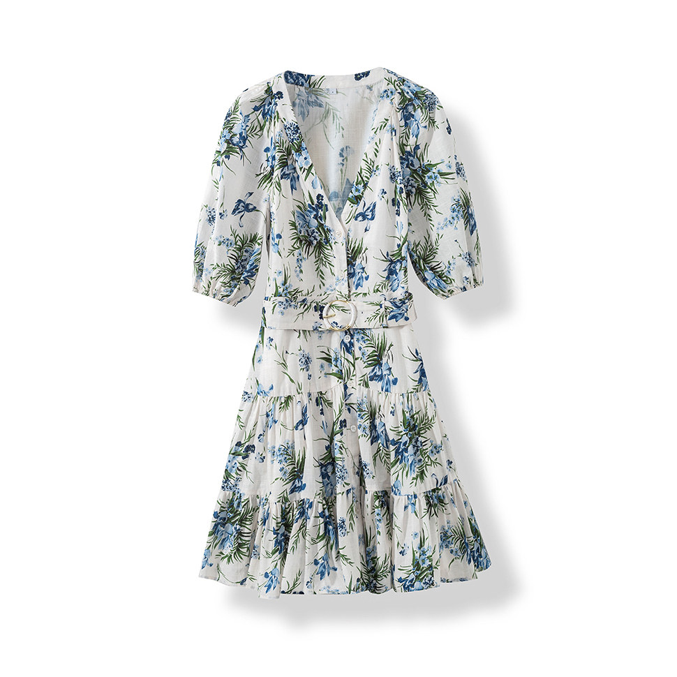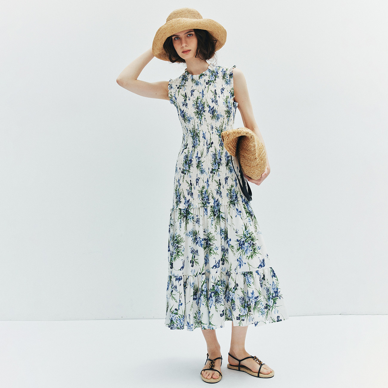 【高端牛货】仿麻竹节肌理重工打揽无袖背心裙+V领收腰印花连衣裙