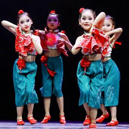 六一儿童喜庆演出服桃李杯古典舞表演服辣妹子秧歌舞手娟舞蹈服装