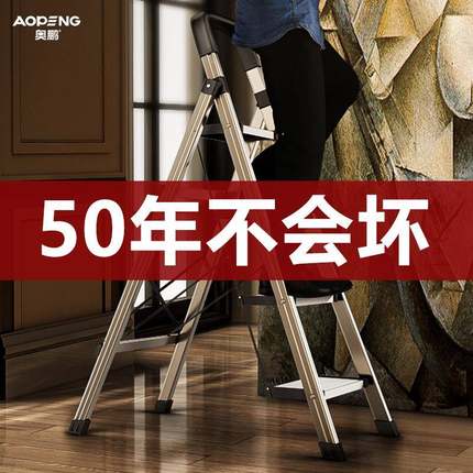 1Z5X奥鹏铝合金梯子家用折叠人字梯加厚室内多功能楼梯三四5步小