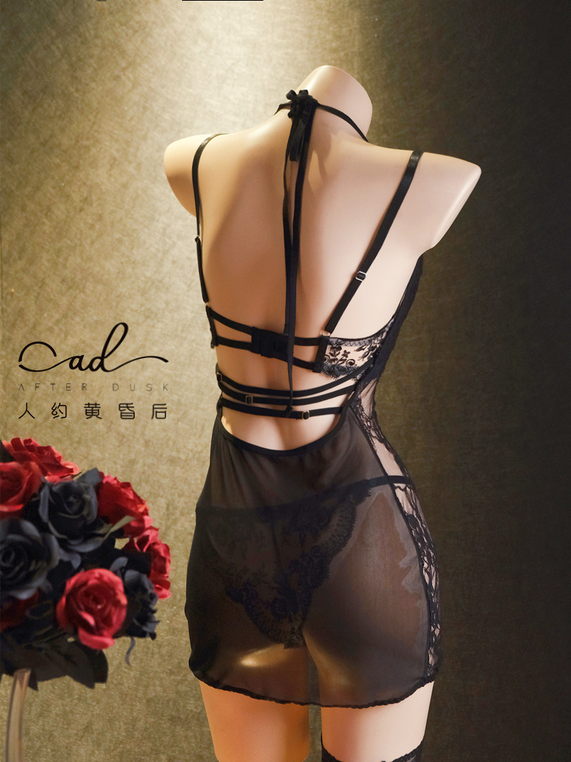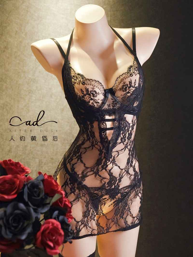 聚拢吊带女新款情趣黑色大码内衣性感睡衣制服透视蕾丝睡裙高级风