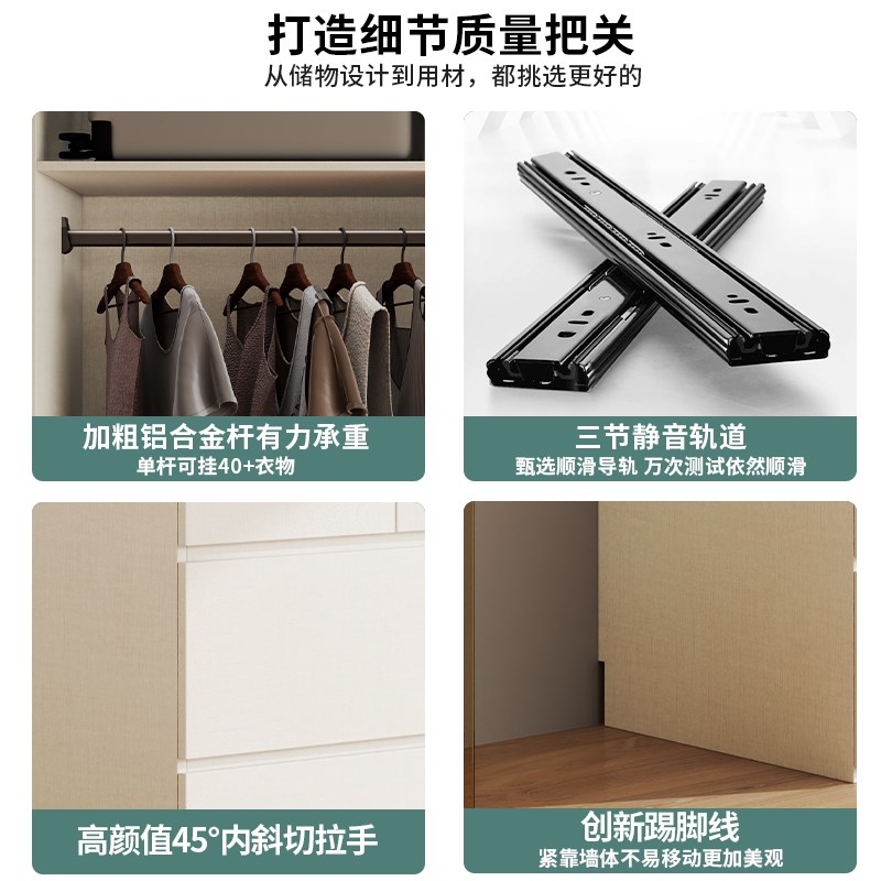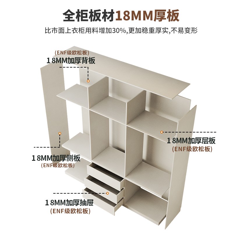 定制ENF级免拉手新款衣柜实木到顶分段式M卧室家用现代简约大衣橱