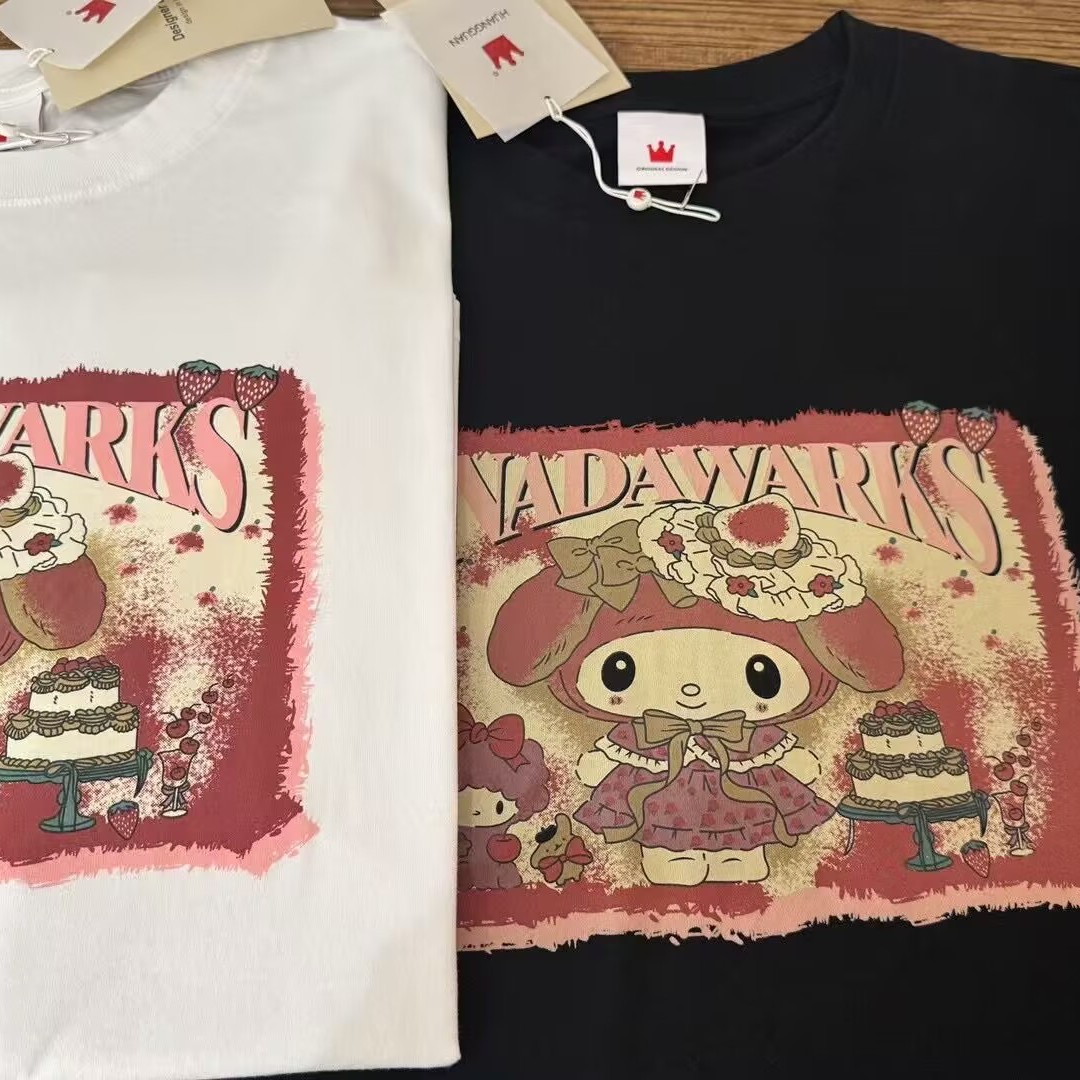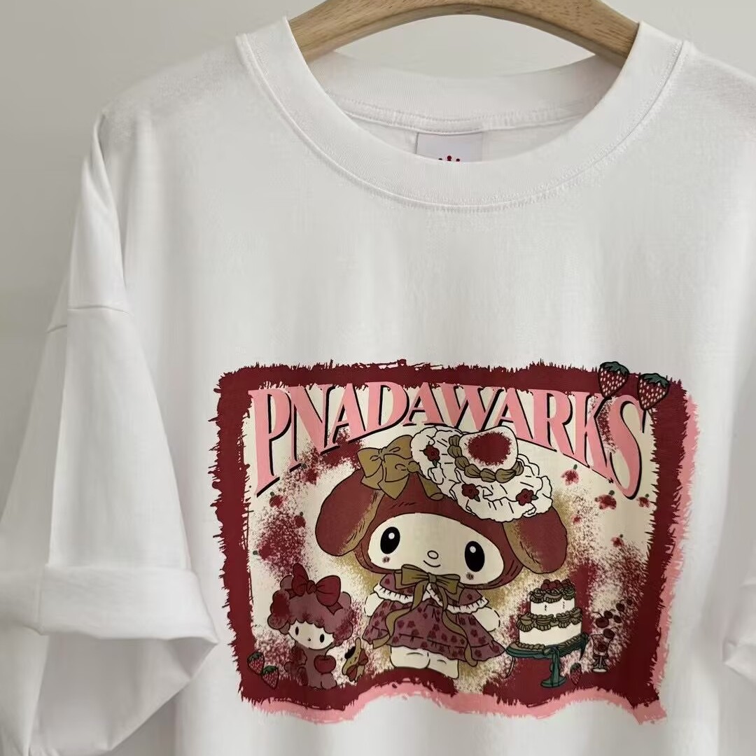 皇冠2025夏季韩版卡通英文印花宽松显瘦中长款休闲圆领短袖T恤女
