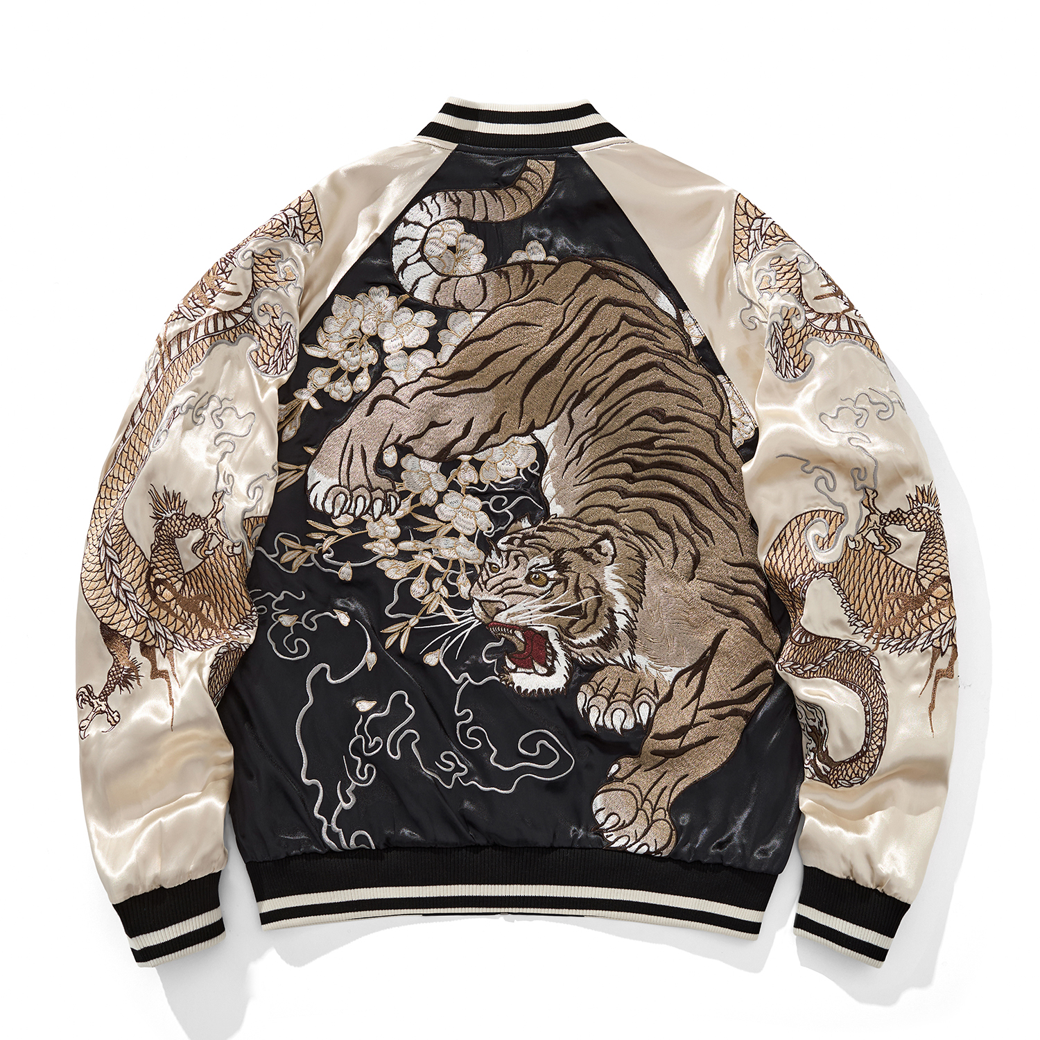 龙虎重工刺绣横须贺夹克外套男女情侣棒球服国潮中国风上衣复古