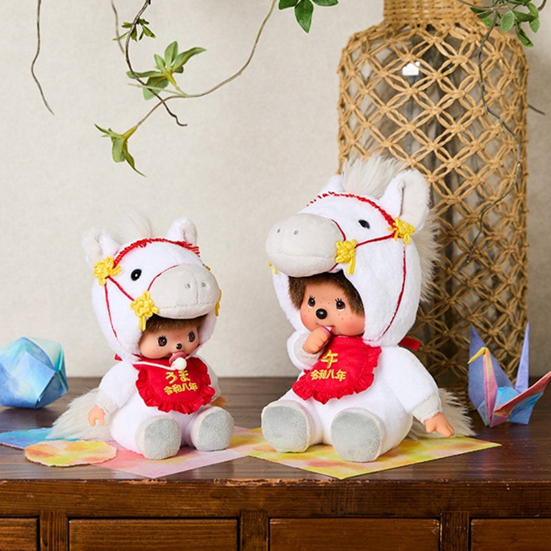 Monchhichi萌趣趣可爱时尚搪胶毛绒公仔娃娃马年生肖款女孩礼品