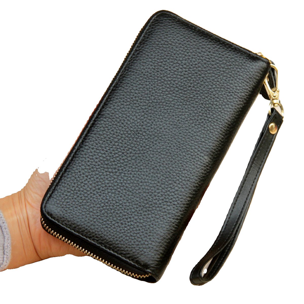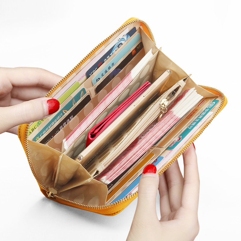 真皮钱包女长款拉链包招财黄色包包多卡位卡包手机包一体包男通用