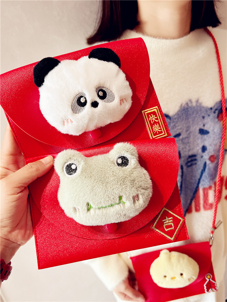 猫熊可爱毛绒pu皮质diy手工粘贴红包斜跨可背熊猫利是封手机包袋