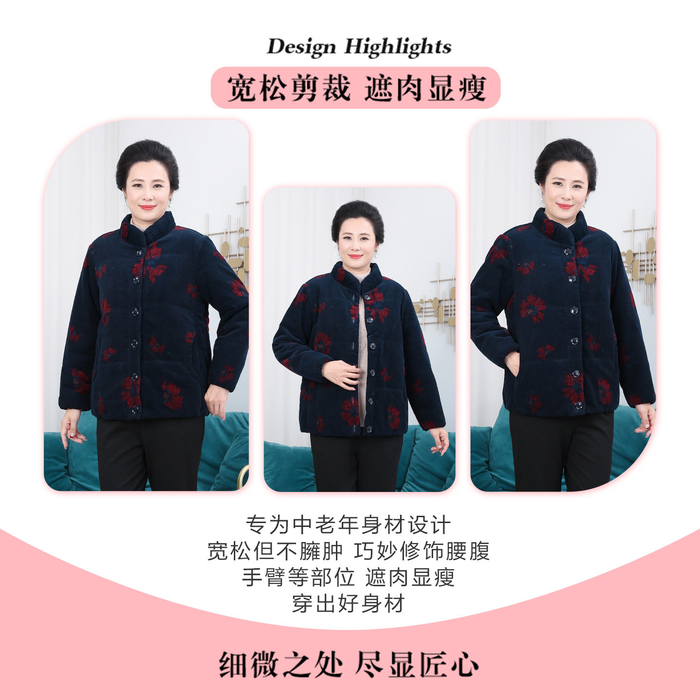 依佈妈妈装冬装新款棉服外套中老年女士全棉保暖上衣加厚大码棉袄