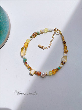 Timee知秋 蜜蜡黄水晶珍珠琥珀图画石捷克琉璃原创小众设计手链女