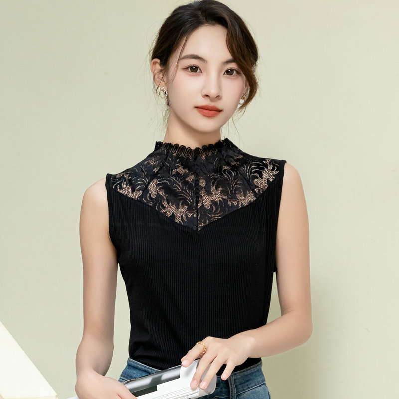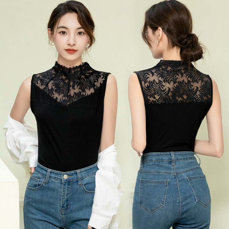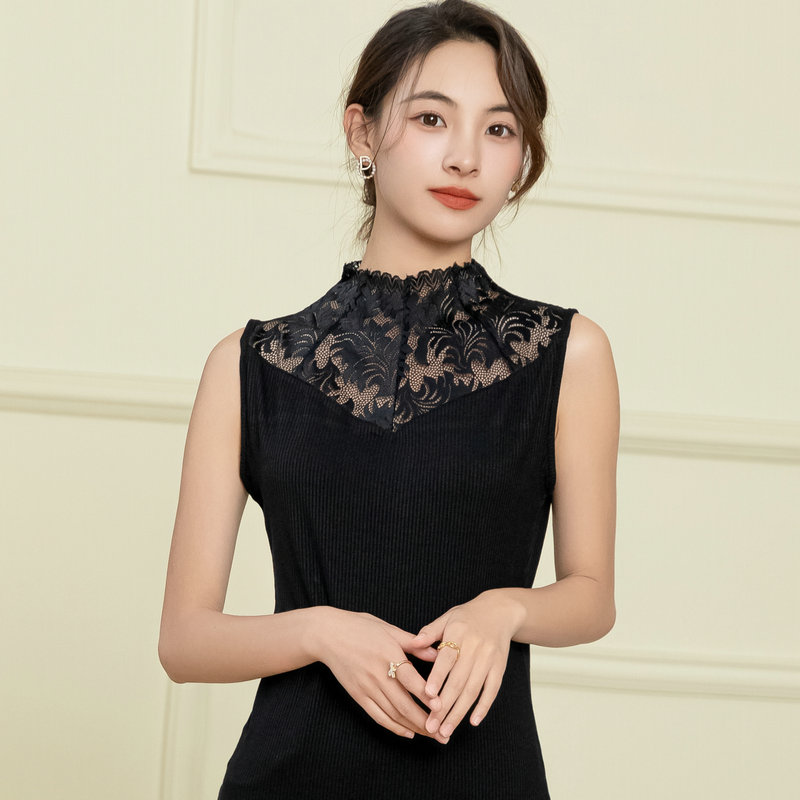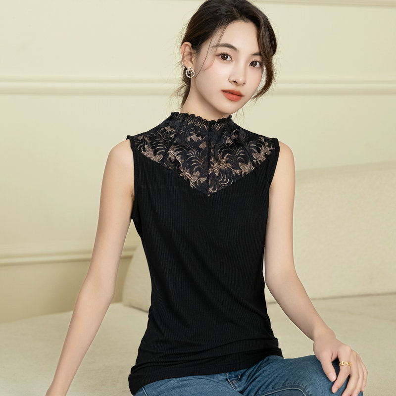 2025秋季半高领莫代尔吊带背心洋气时髦内搭蕾丝t恤打底衫女上衣