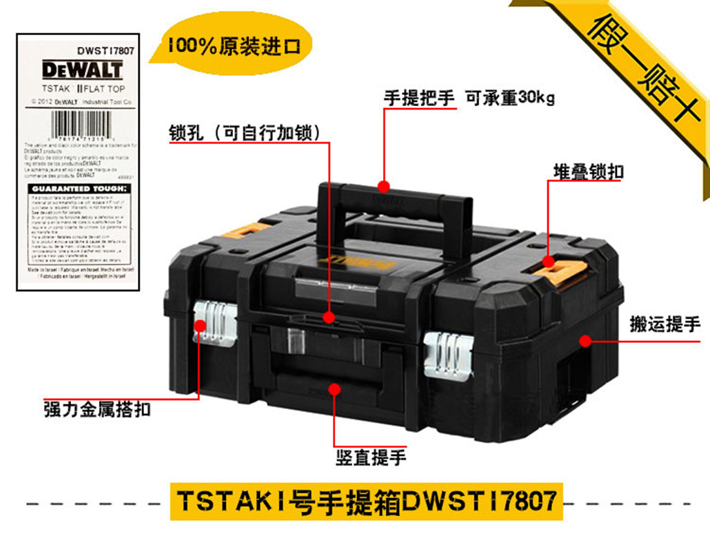 正品得伟DEWALT灵便系统可堆叠TSTAK1号手提塑料工具箱DWST17807
