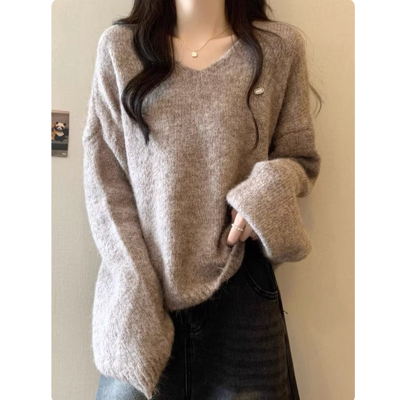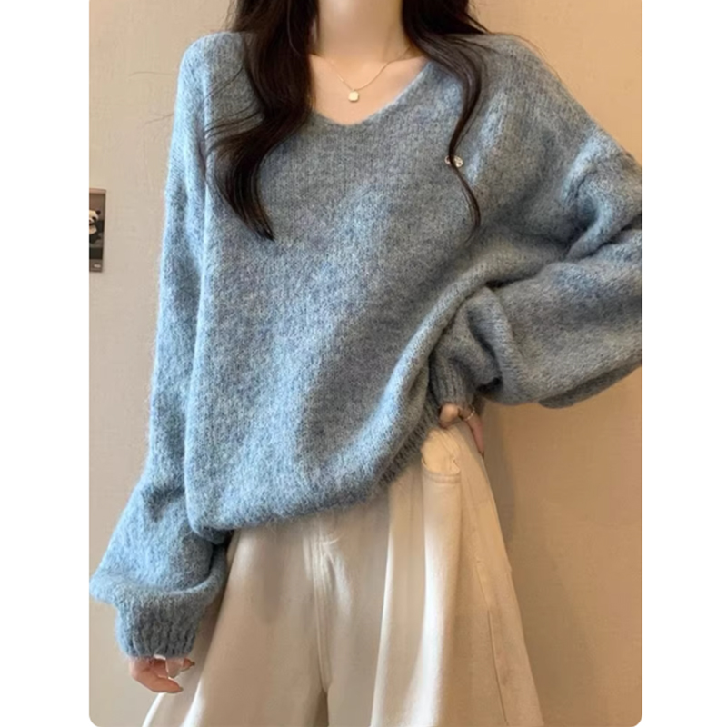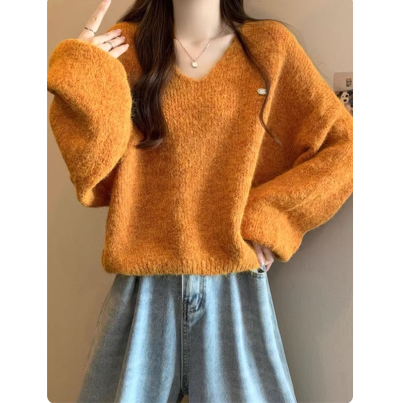 慵懒风软糯V领针织衫女2025秋冬新款宽松时尚气质内搭毛衣打底衫