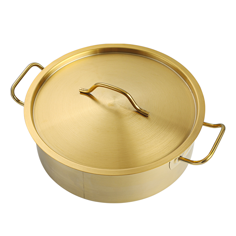 金色不锈钢火锅盆商用鸳鸯锅涮锅电磁炉专用双耳大容量平底锅汤锅