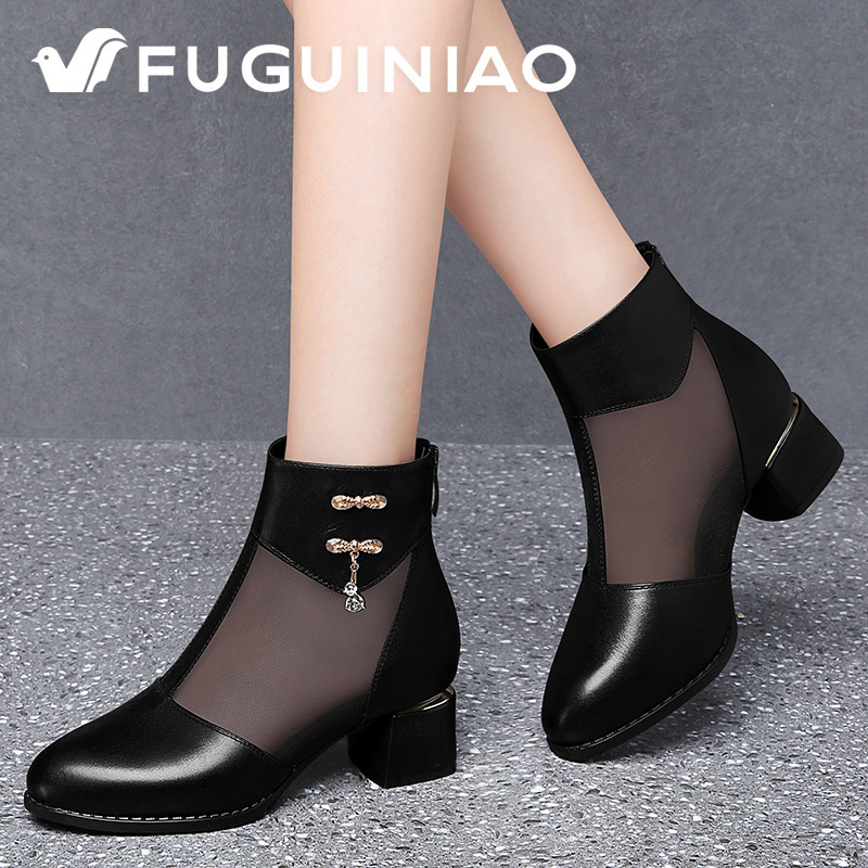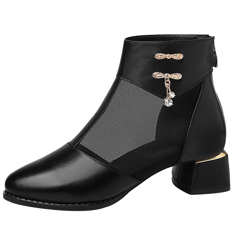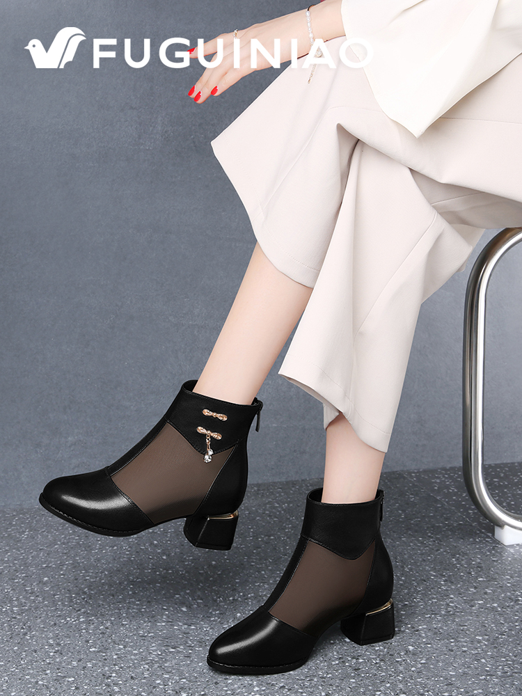 春季气质款女士中跟皮鞋2024新款春夏真皮高跟鞋子单鞋网纱工作鞋