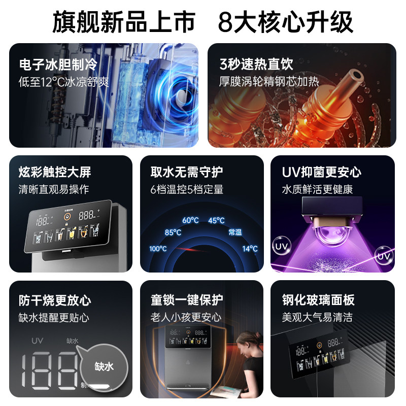 沁园京泽管线机净水器一体家用壁挂式直饮机加热冰两用饮水机套装
