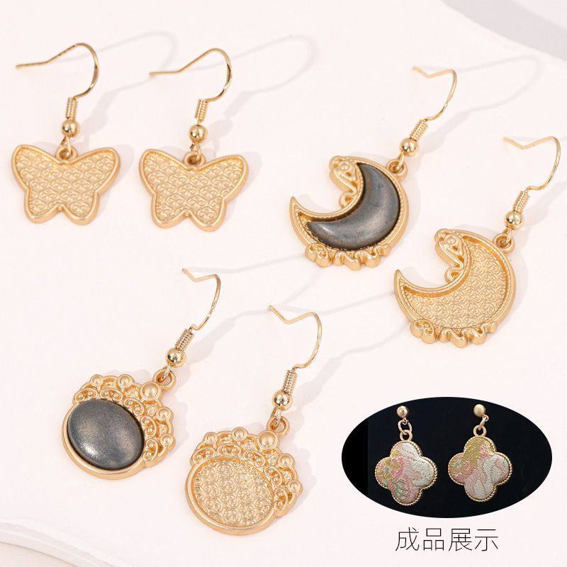 宋锦耳钩蓝染刺绣手工diy新中式底托高级感国风非遗复古耳钉耳环