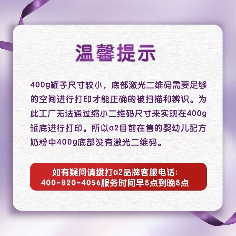a2紫白金进口1段婴幼儿奶粉400g