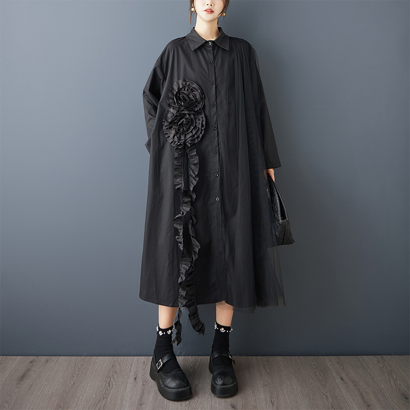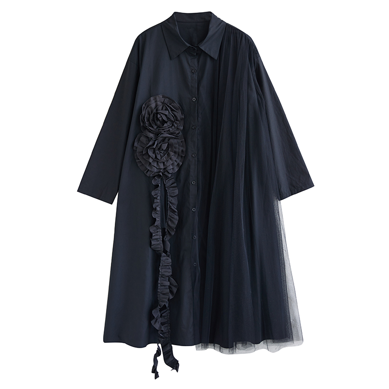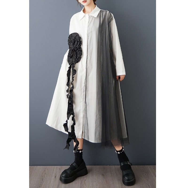 外单出口 春秋新款韩版宽松大码拼接休闲简约甜美长袖衬衫连衣裙