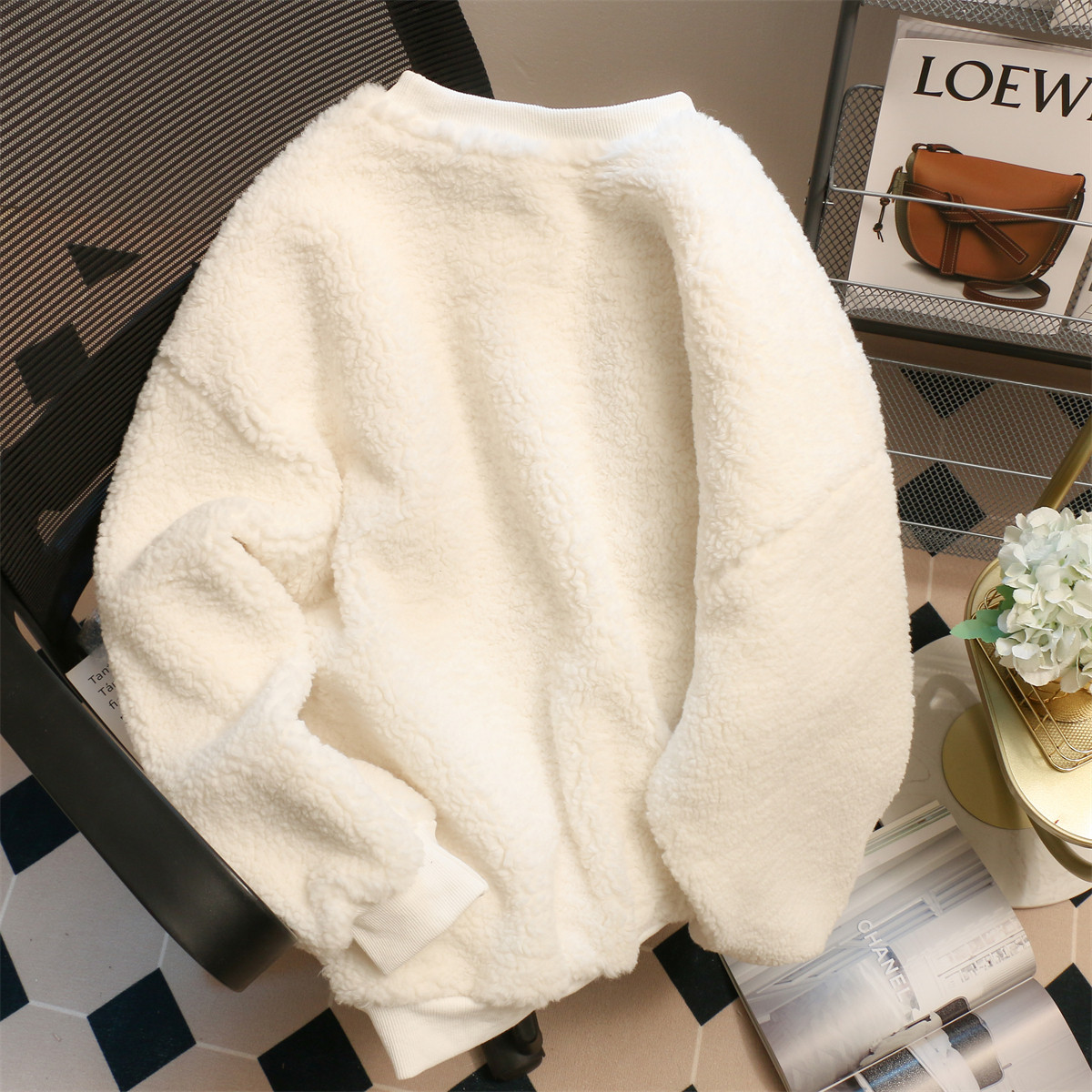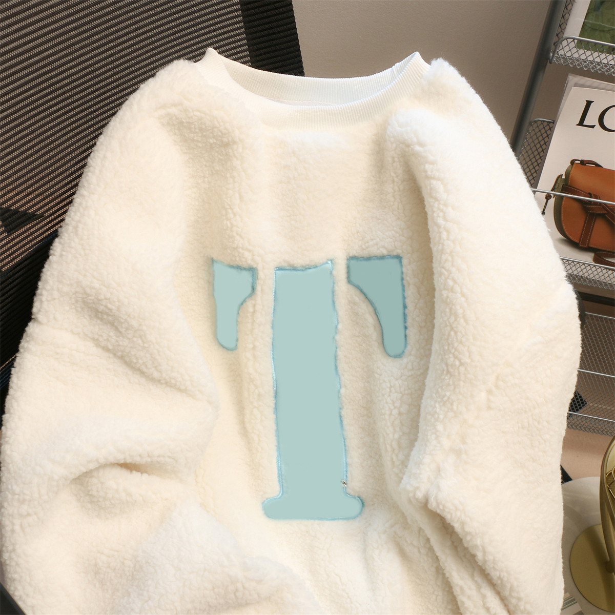 捡漏外贸chic港风小众字母卫衣女装冬季宽松加绒加厚外套保暖圆领