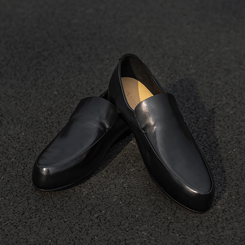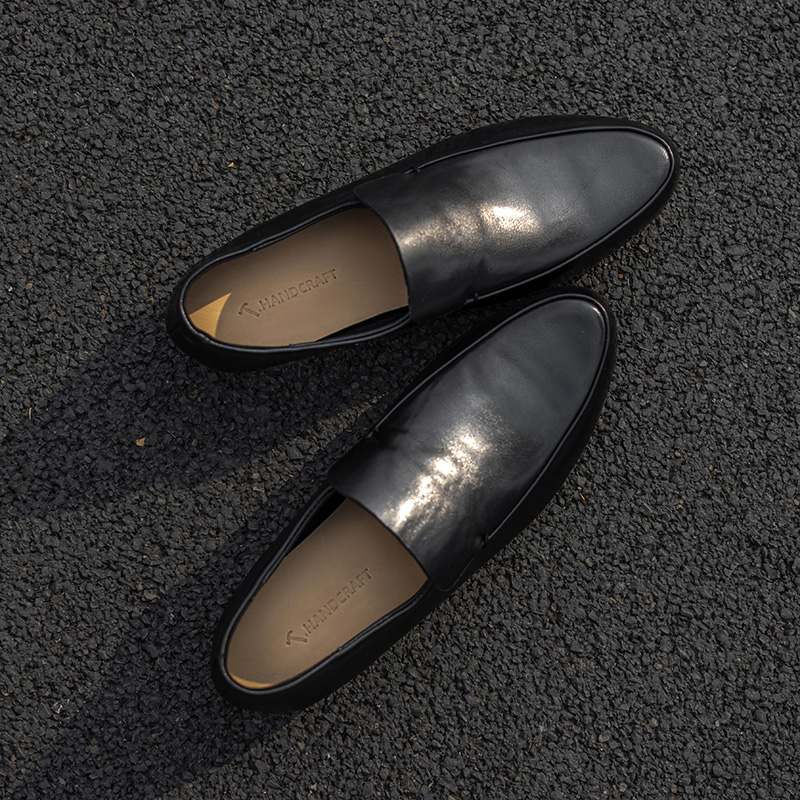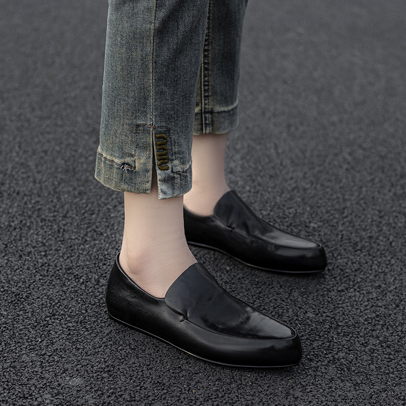 欧美尖头极简牛皮平底女士乐福鞋休闲舒适小皮鞋一脚蹬单鞋豆豆鞋
