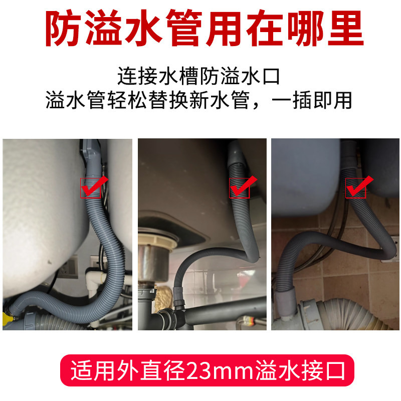 加厚洗菜盆水槽溢水管23mm-25mm口径厨房下水三通软管配件加长管