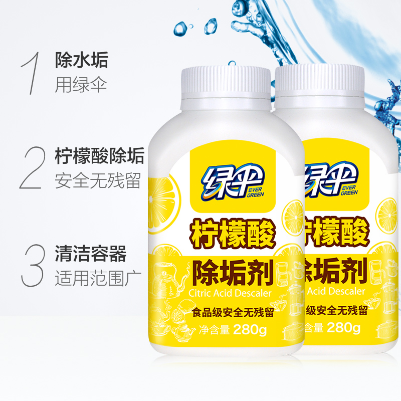 绿伞柠檬酸除垢剂水垢清除剂280g*2瓶电水壶热水壶烧水壶饮水机