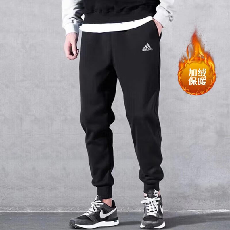 adidas阿迪达斯运动裤男裤2025秋冬新款休闲加绒保暖卫裤束脚长裤