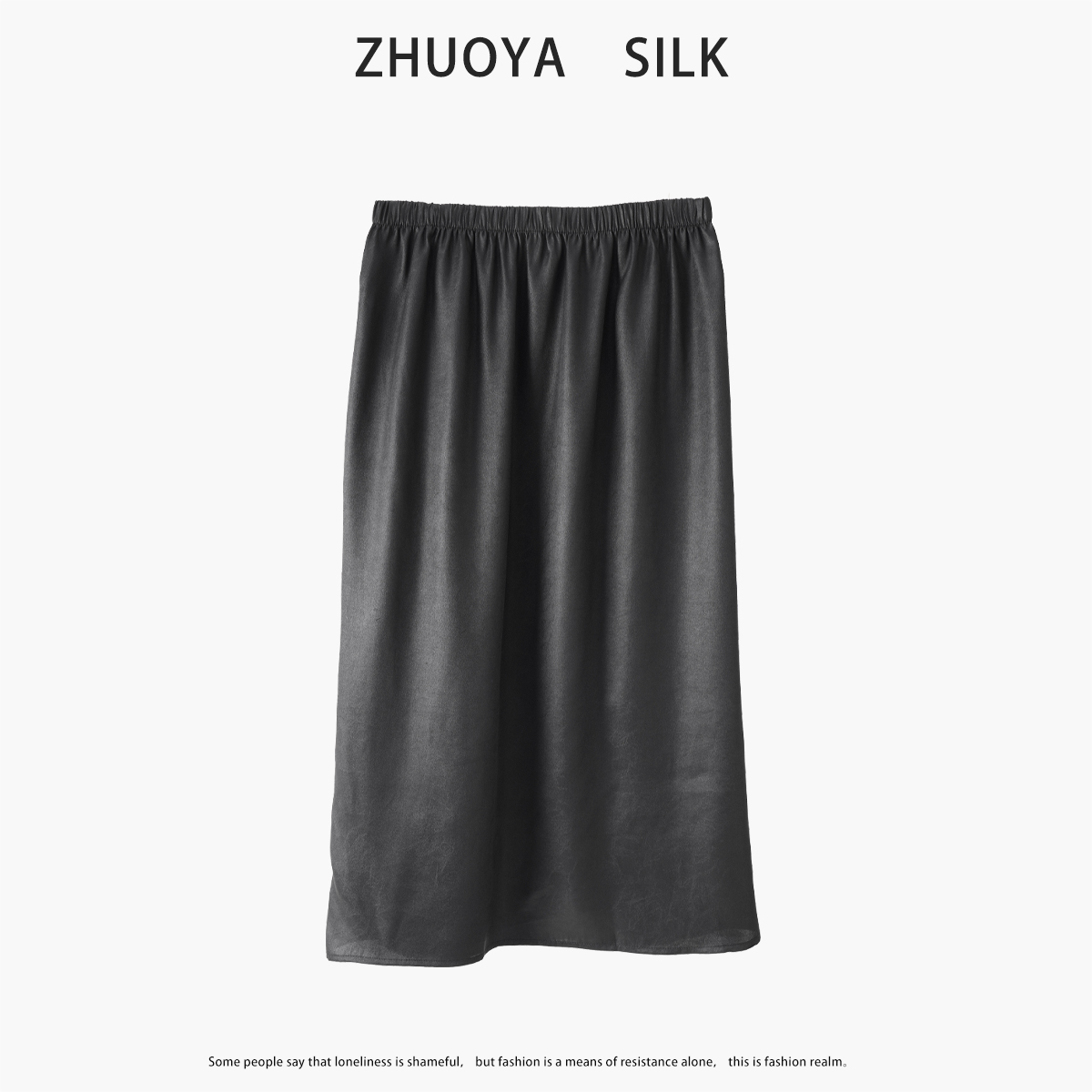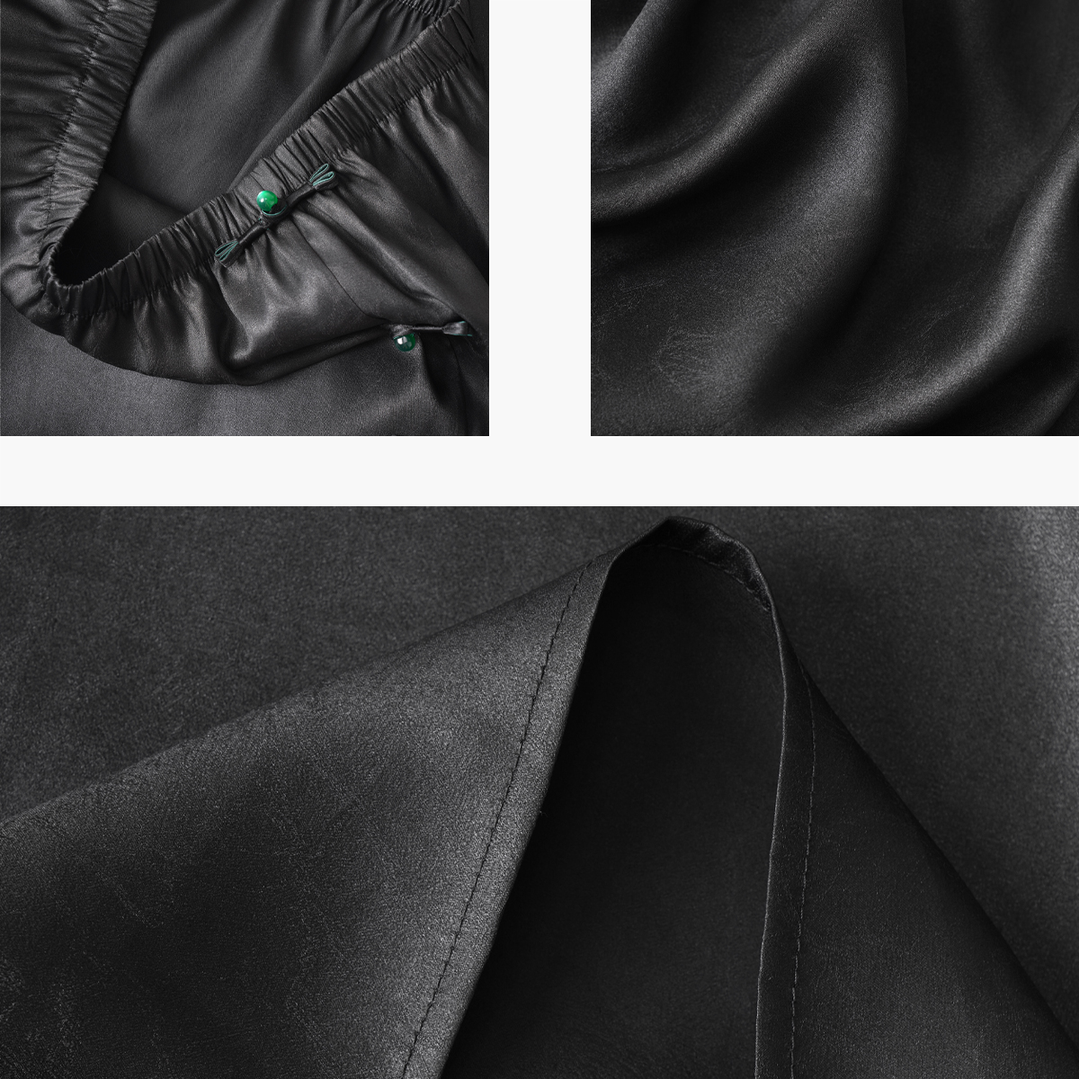 琸娅100%桑蚕丝新中式香云纱半裙真丝玉石盘扣黑色简约国风女装