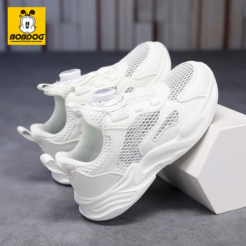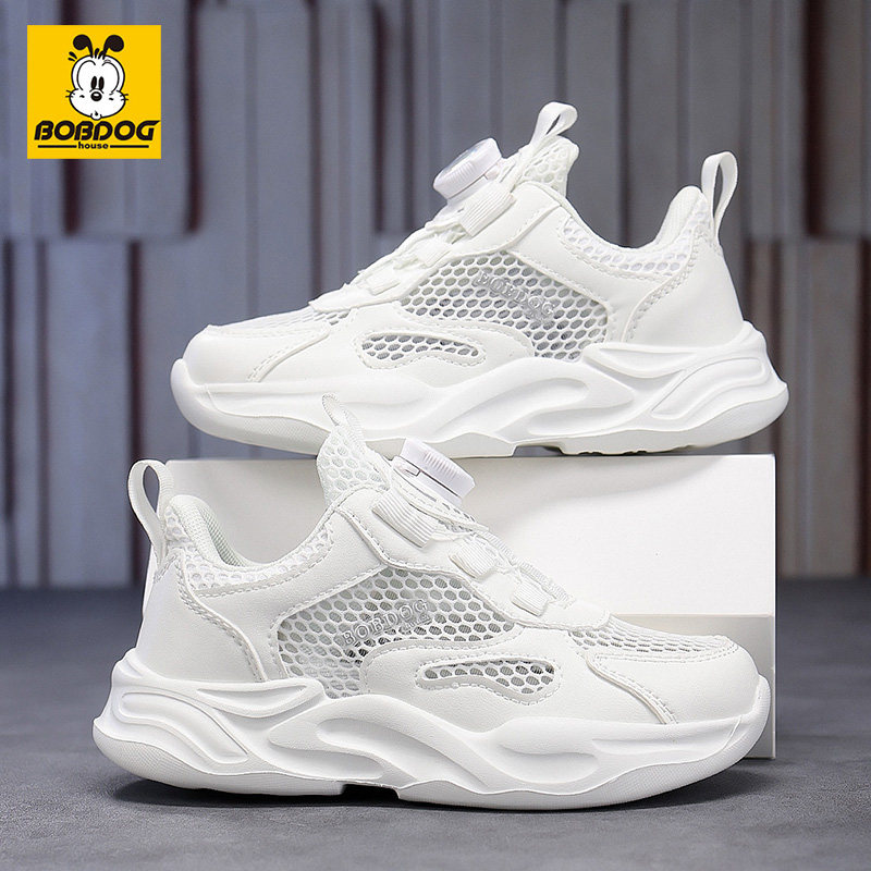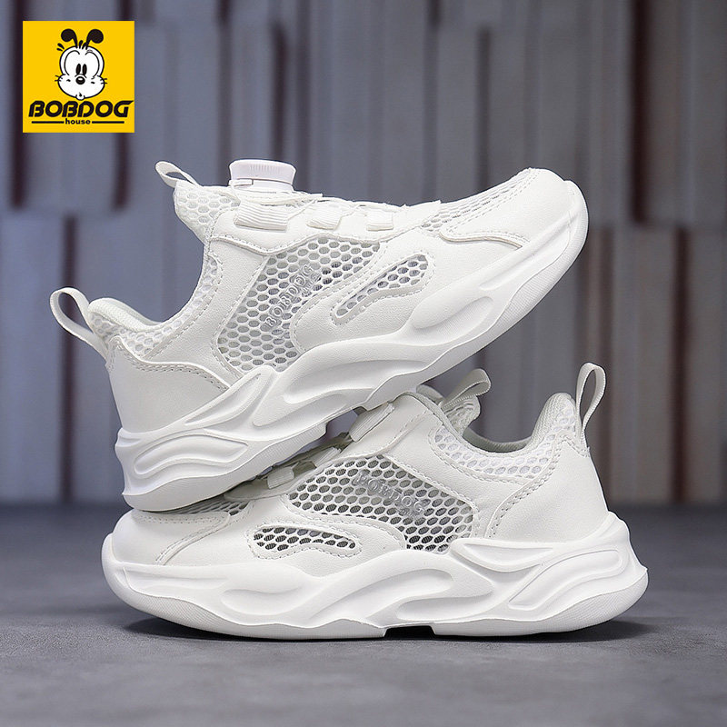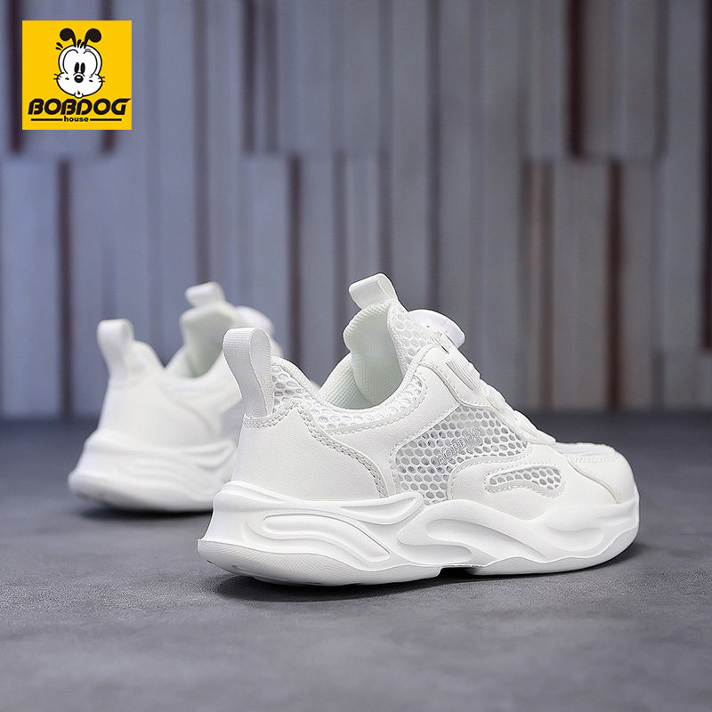 巴布豆儿童小白鞋2025春秋新款男女童白色网面透气校园运动鞋中大
