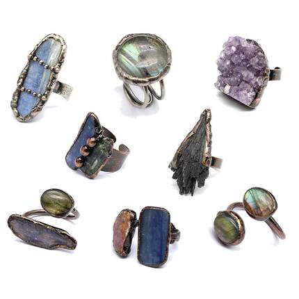 BKP「水晶戒」小众复古废土部落风天然石戒指开口原石饰品不规则