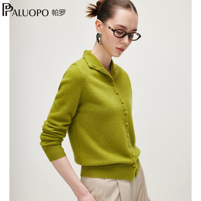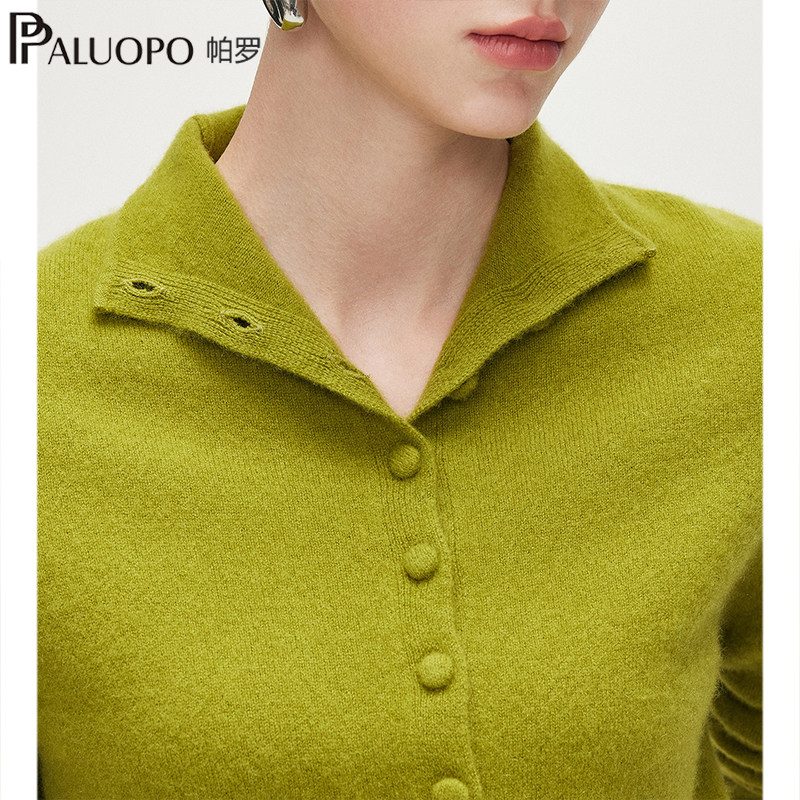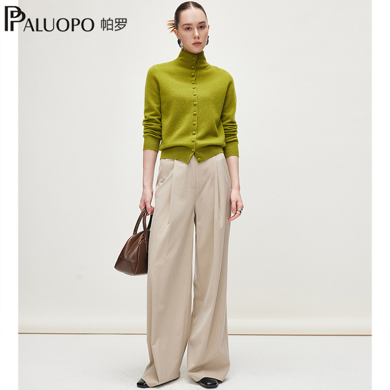 帕罗【商场同款RED红标】秋冬半高领0压绒感100山羊绒开衫毛衣
