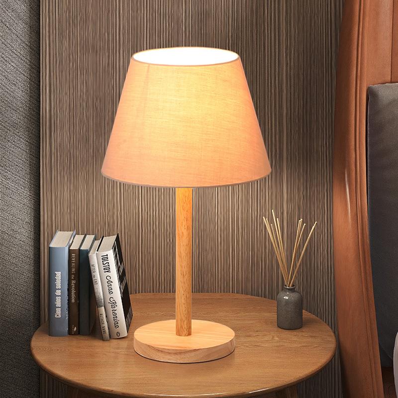 烨上简约现代台灯卧室床头房间实木布艺床头灯灯饰原木风日式灯具